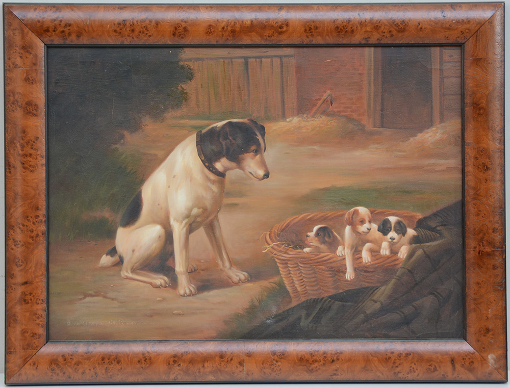 Ignoto "Cortile con cani" olio su tela (cm 50x70) in cornice