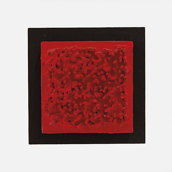 BERNARD AUBERTIN Fontenay-aux-roses 1934 Tableau Clous 1970 chiodi su tavola, 10x10 titolo al retro esposizioni Galleria Centro Brescia - etichetta al retro