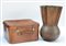 Lotto composto da un portaombrelli in rame e una valigia in cuoio (difetti)