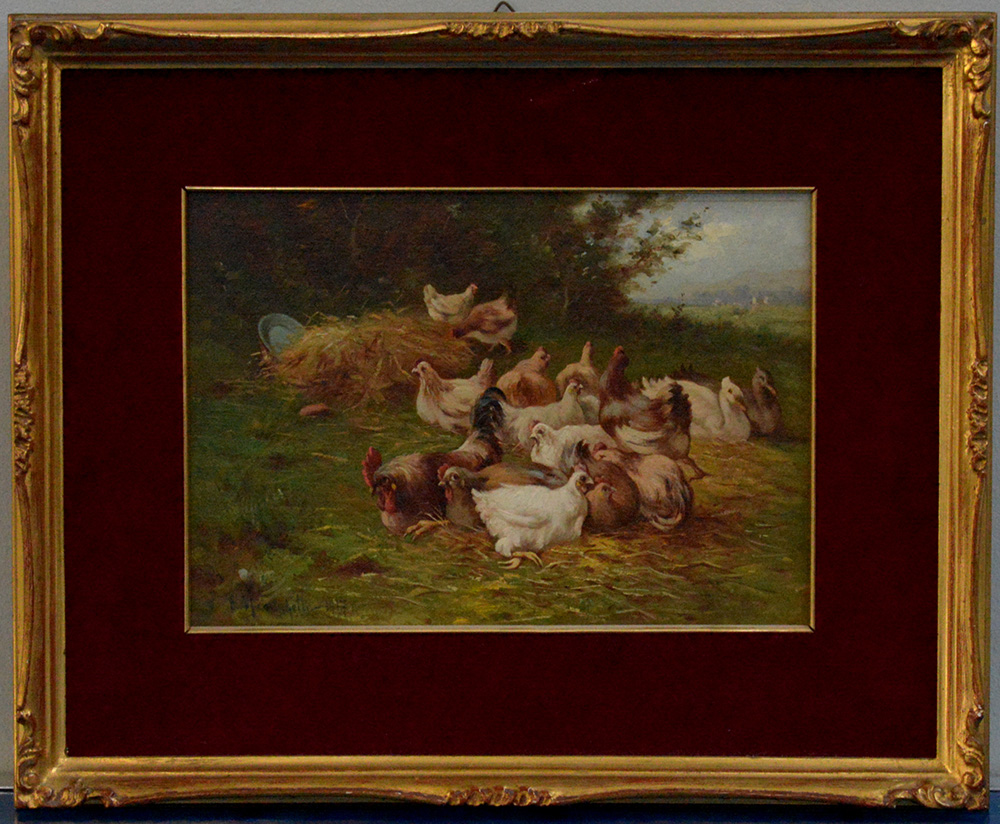 "Nel prato" 1917, olio su compensato (cm 18.5x26.5) Firmato e datato in basso a sinistra. In cornice