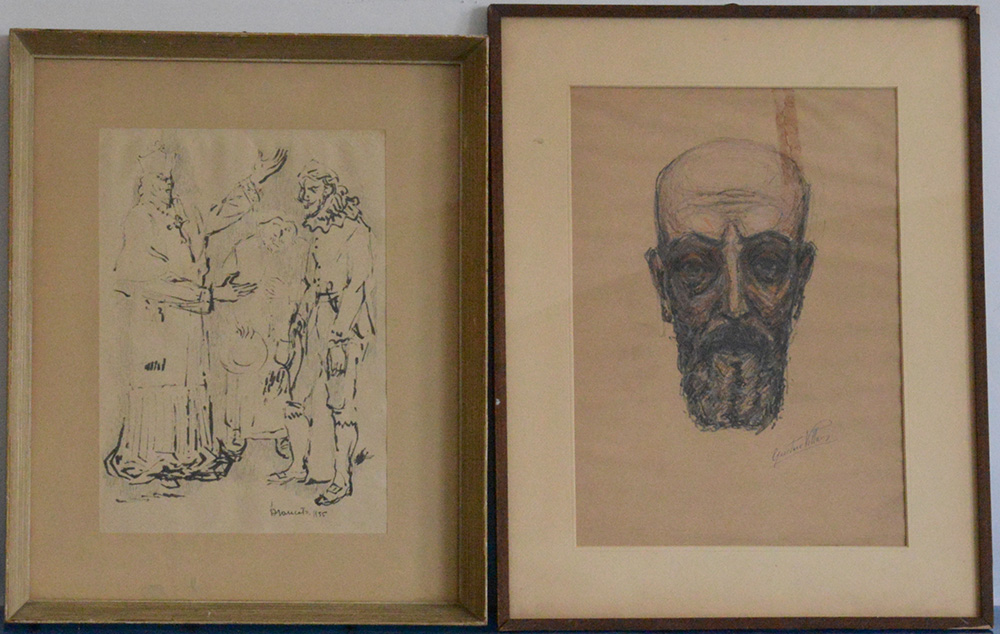 Lotto di due disegni su carta firmati Villani e Brancato, in cornici (difetti)