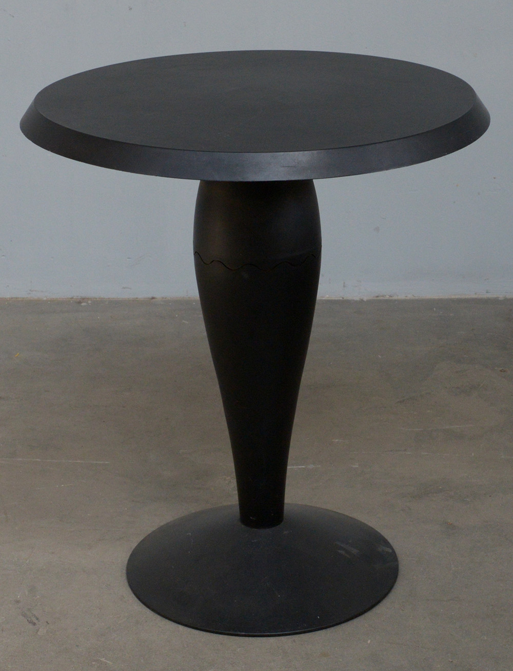 Tavolo rotondo modello "Miss Balu'". Produzione Kartell, Milano, 1988. Composto plastico color nero. (h cm 74; d cm 95) (lievi difetti)