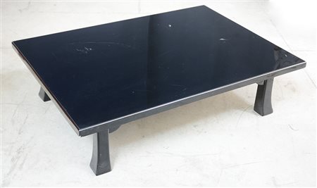 Tavolino da salotto in legno laccato nero lucido. (cm 120x32x84) (lievi...