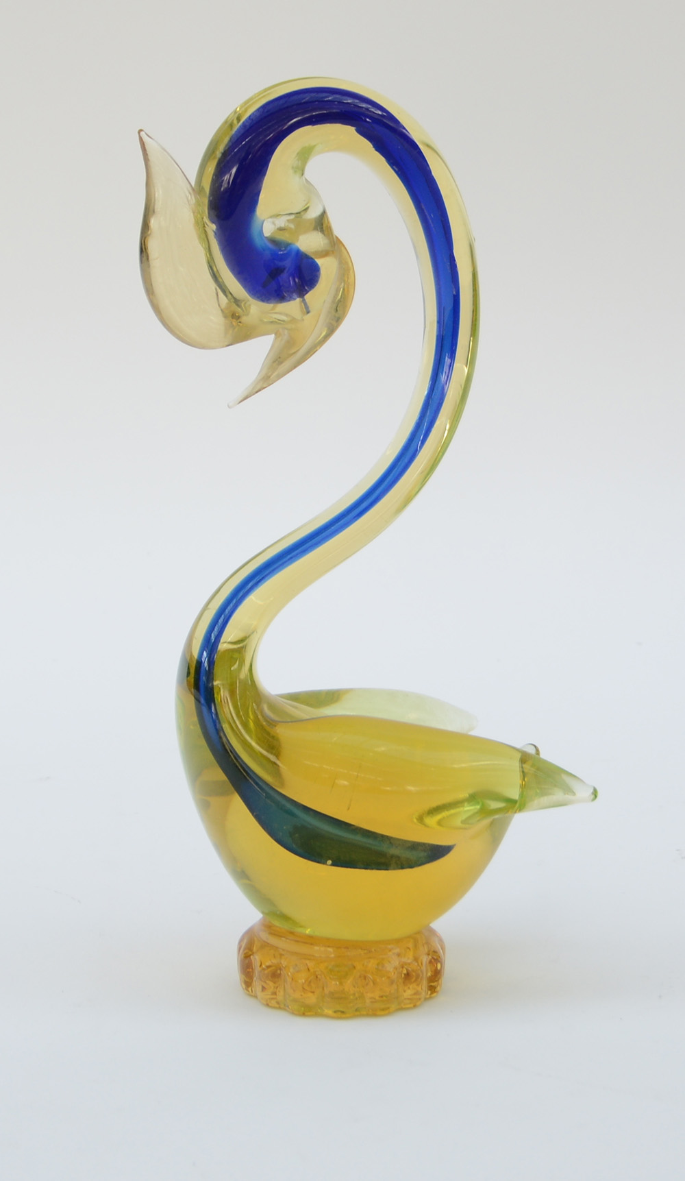 Manifattura di Murano"Cigno"Scultura in vetro sommerso nei toni del giallo,...