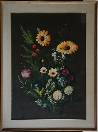 "Composizione" olio su masonite (cm 94x67) firmato in basso a destra, titolato e datato 1963 al verso, in cornice (lievi difetti)