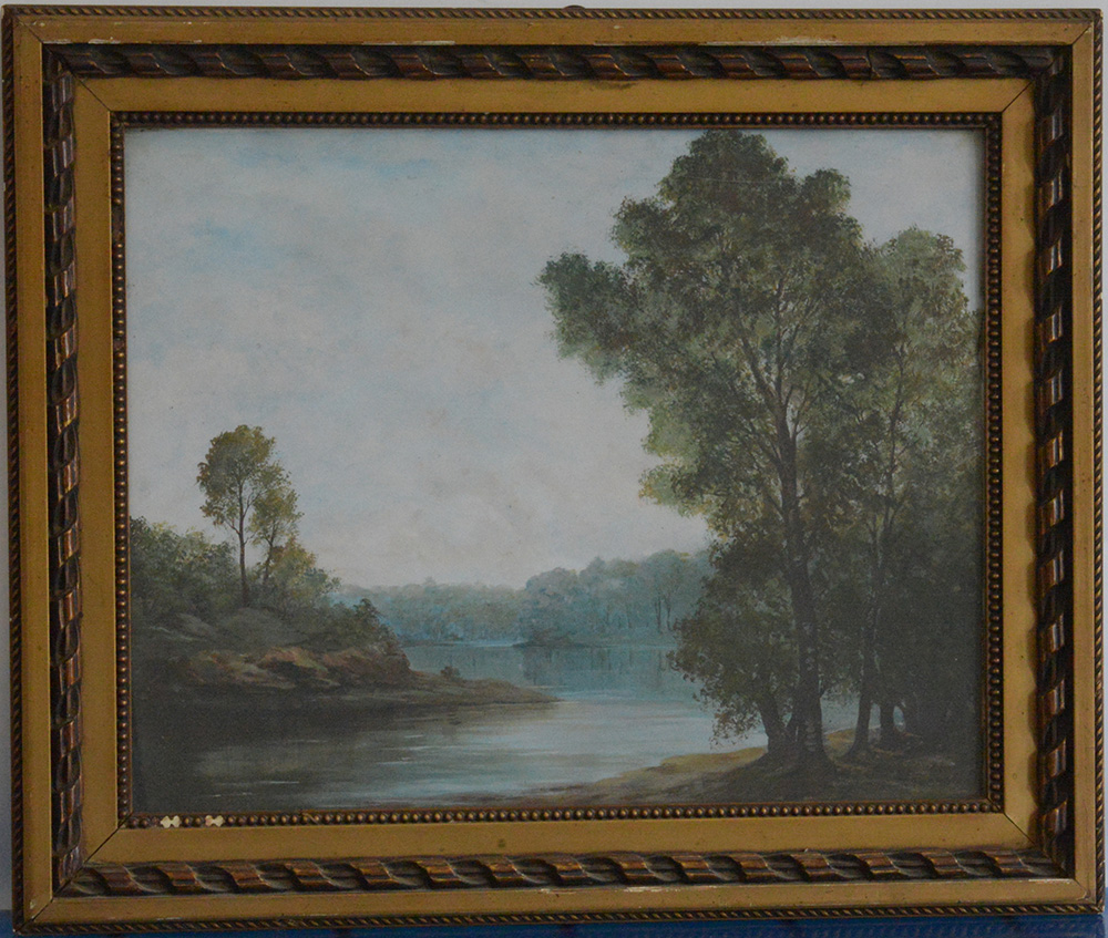 "Paesaggio lacustre" tecnica mista su cartoncino (cm 40x50), in cornice (lievi difetti)