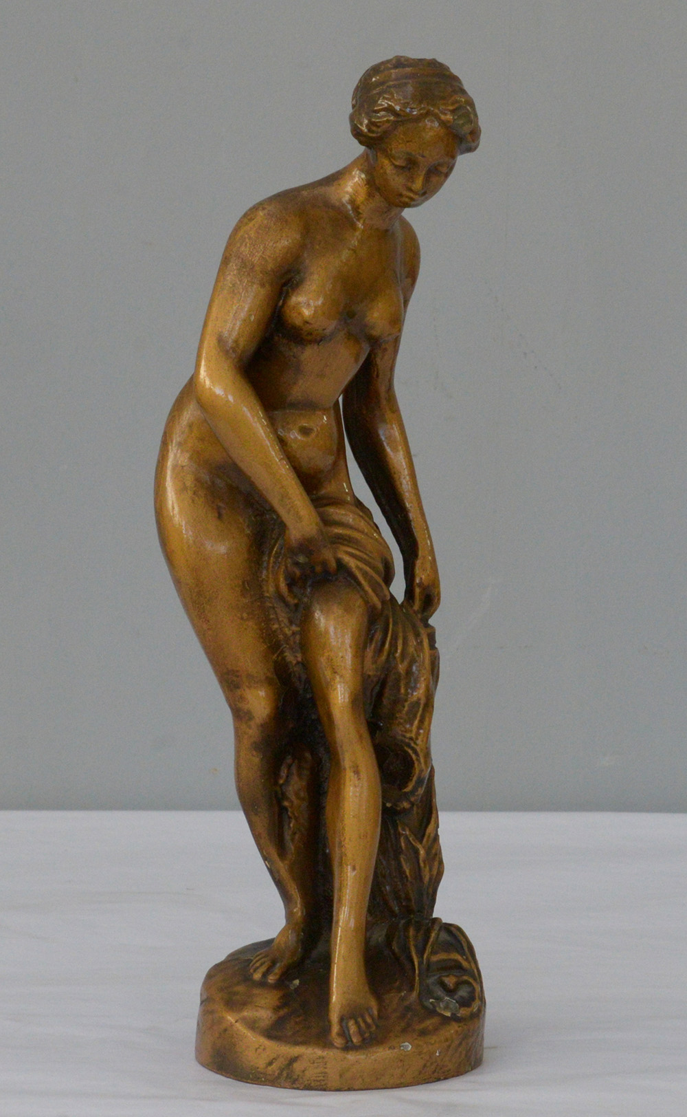 Scultura in gesso patinato raffigurante figura femminile classica (h cm 41) (difetti)