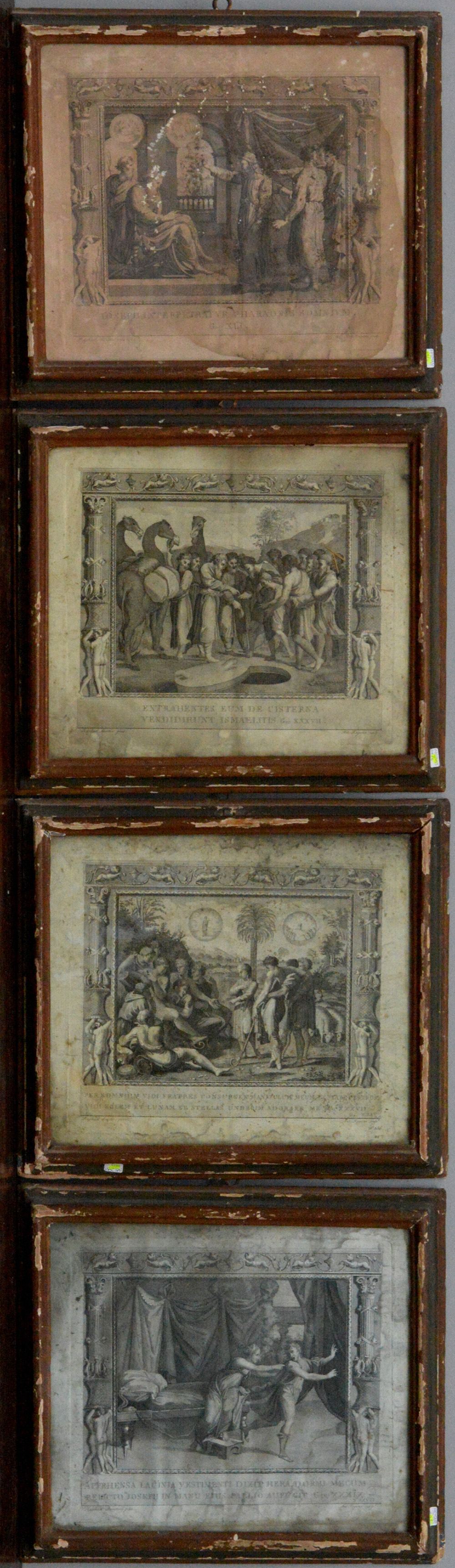 Gruppo di quattro antiche incisioni da Raffaello (cm 28x33)in cornici del secolo XVIII (difetti e mancanze)