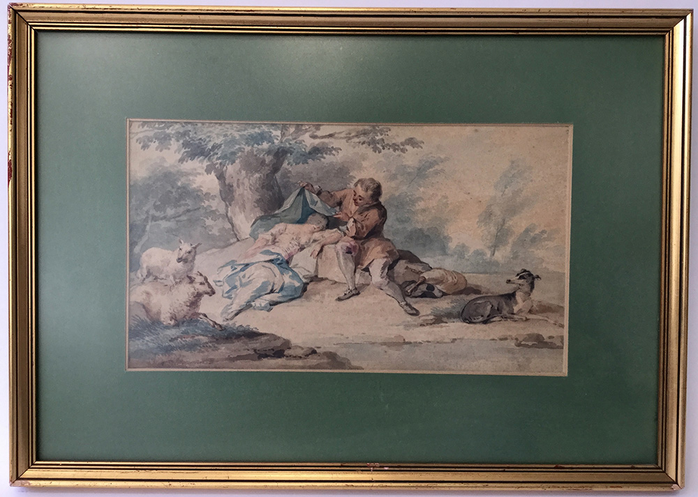 Scuola francese della fine del secolo XIX "Scena bucolica" acquerello su carta (cm 14,5x25,5) In cornice