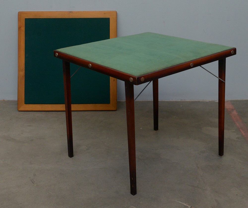 Tavolino da gioco con gambe pieghevoli unito ad un piano rivestito in panno (difetti)