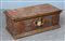Antico forziere in legno dorato e laccato in policromia a fiori e motivi vegetali centrato nella fascia da testa di Cherubino in rilievo (cm 77x30x35) (difetti)