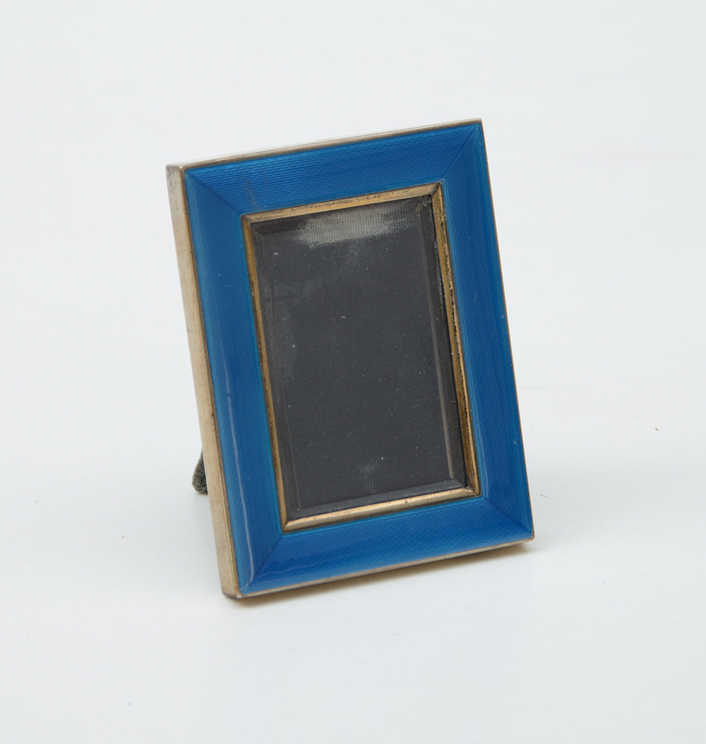 Piccola cornice da tavolo in argento rettangolare con bordo smaltato (cm 6,5x9) (lievi difetti)
