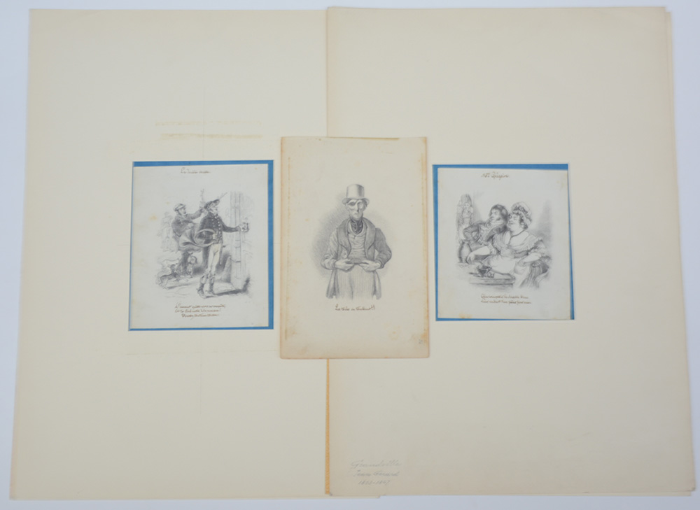 Gerard-Grandville (attribuito) gruppo di cinque disegni di misure diverse (difetti)