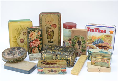 Lotto composto da dodici scatole in latta, cartone e altri materiali (difetti)