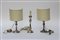 Lotto composto da tre candelieri montati a luce elettrica, di cui uno in argento con punzoni inglesi (difetti)