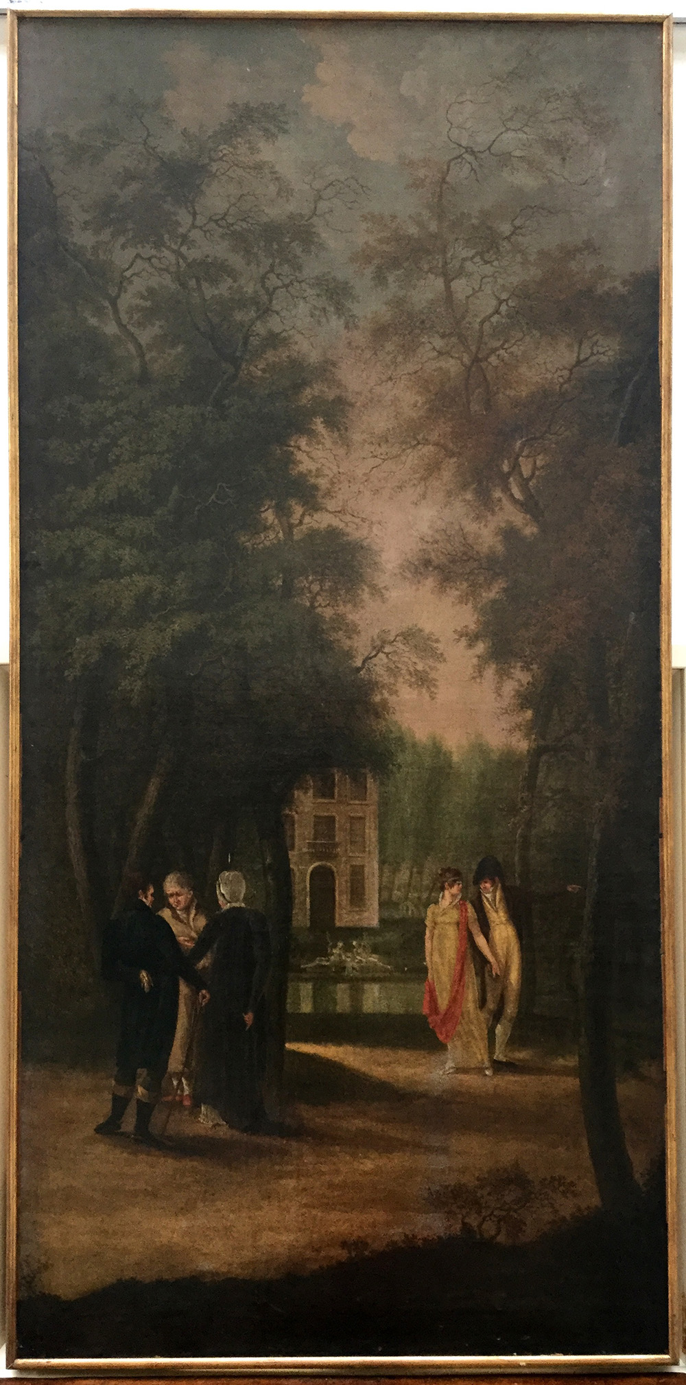 Scuola del secolo XIX "Figura nel parco" olio su tela (cm 184x90) (difetti)