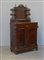 Credenzina con alzata in noce e radica di noce, parte superiore a specchio,...