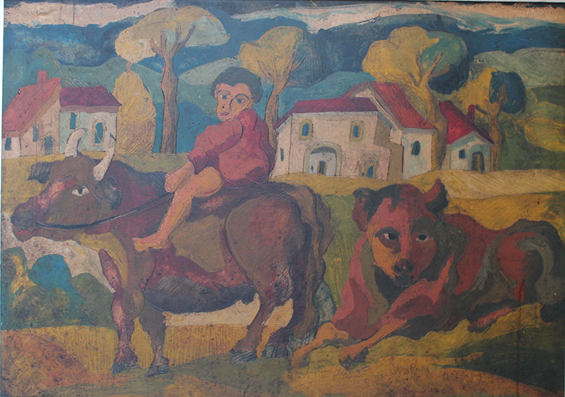 Beppe Serafini, Olio inciso su cartone pressato. Dimensioni: 50cm x70cm. Certificazione: Firmato retro opera