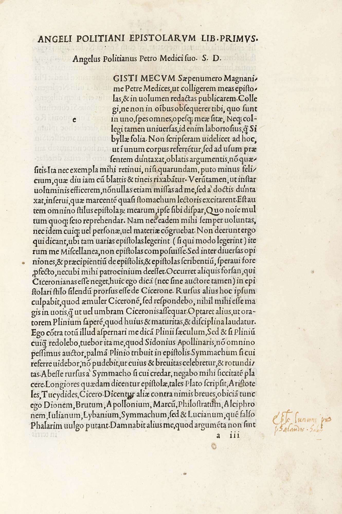 POLIZIANO, Angelo (1454-1494) - Omnia Opera Angeli Politiani. Venezia: Aldo Man