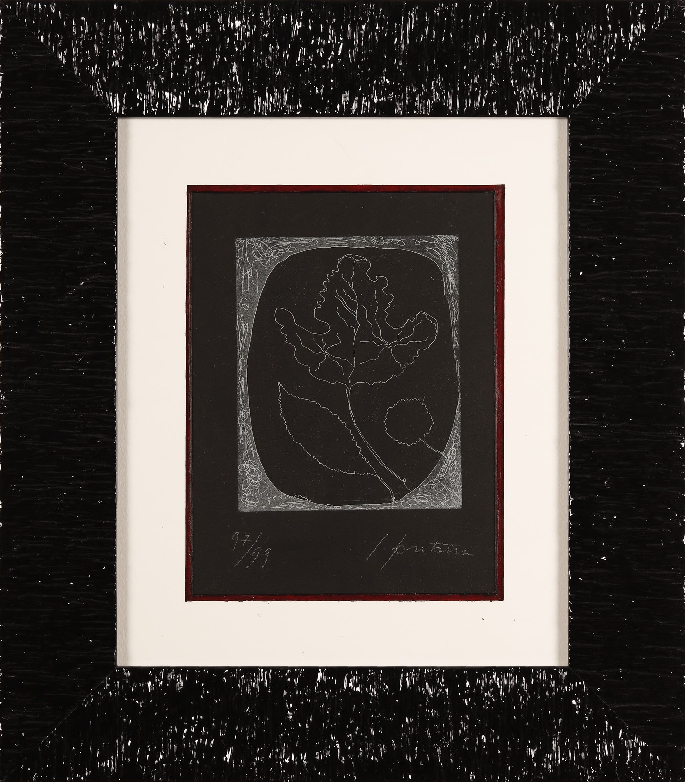 FONTANA LUCIO (1899 - 1960) Senza titolo. . 1964. Acquaforte e acquatinta. Cm 22,50 x 29,40. 97/99. Tiratura (99 + alcune prove d'autore) e firma in basso. Edtore: Galleria Milano, Milano; Stampatore: Giorgio Upiglio, Milano. Dimensioni lastra: 19x15.5 cm. Bibliografia: Ruhé & Rigo, Lucio Fontana Graphics, E-23. Cornice presente