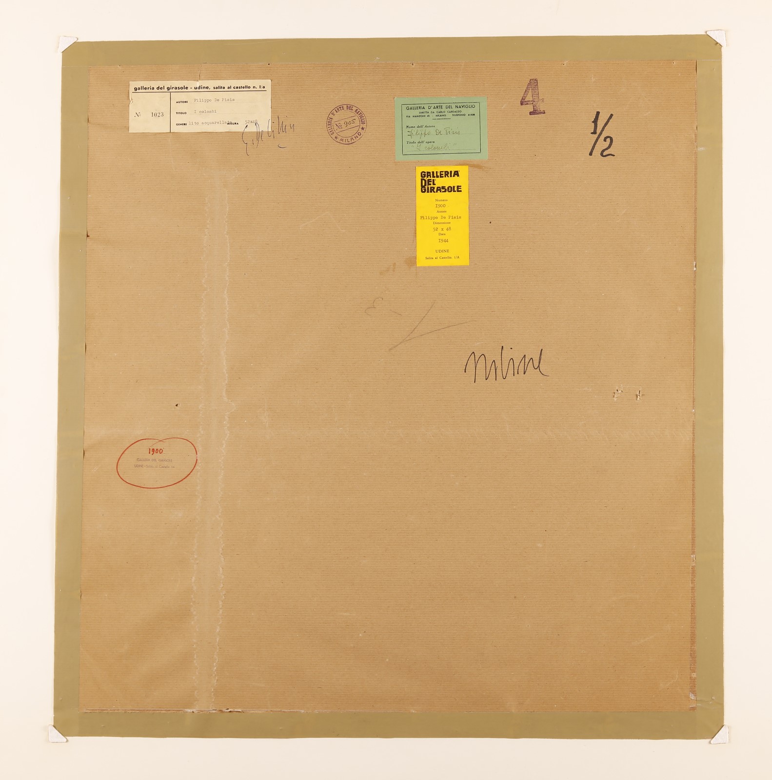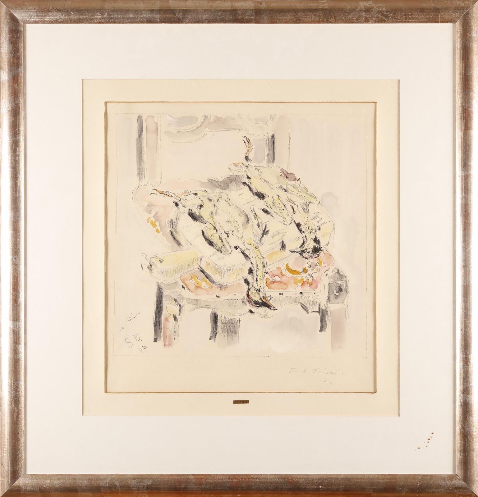 DE PISIS FILIPPO (1896 - 1956) I piccioncini. 1944. Litografia ritoccata a mano. Cm 47,00 x 50,00. Firma e anno a matita in basso a destra. Al retro cartiglio descrittivo Galleria del Girasole, Udine e cartiglio descrittivo con timbro Galleria del Naviglio, Milano. Pubblicazione: L'opera grafica di Filippo De Pisis a cura di Manlio Malabotta, Edizioni di Comunità, Milano 1969, p. 50-51, tav. 8. Cornice presente