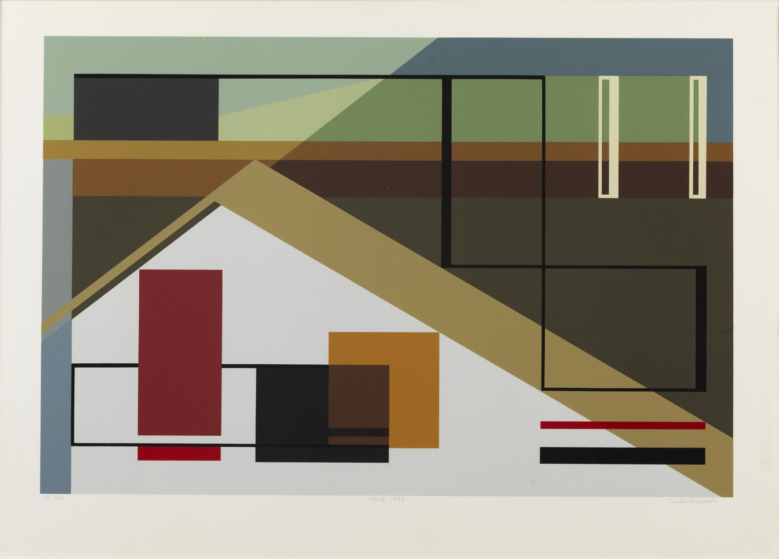 BADIALI CARLA (1907 - 1992) Senza titolo. Serigrafia. Cm 70,00 x 50,00. 32/100. Tiratura, firma e anno a matita in basso. 1943 -1985. Cornice presente
