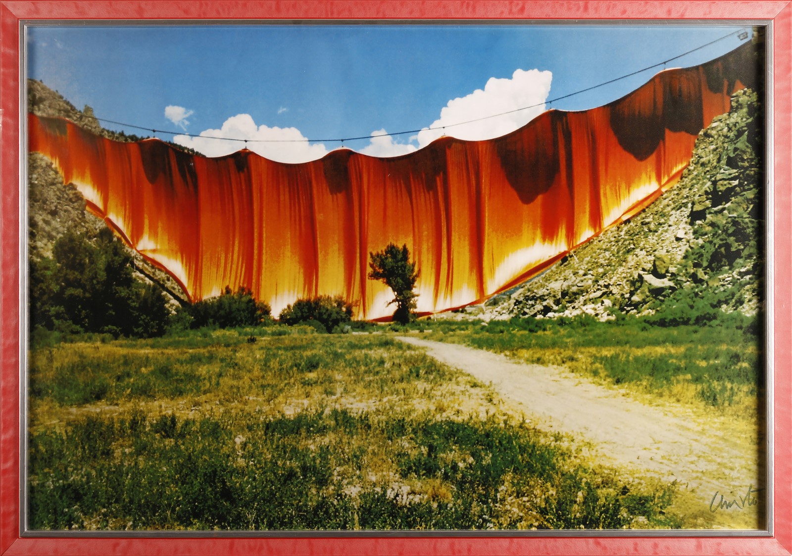 CHRISTO (n. 1935) Senza titolo. . Stampa a colori. Cm 95,00 x 65,00. Firma in basso a destra. . Cornice presente