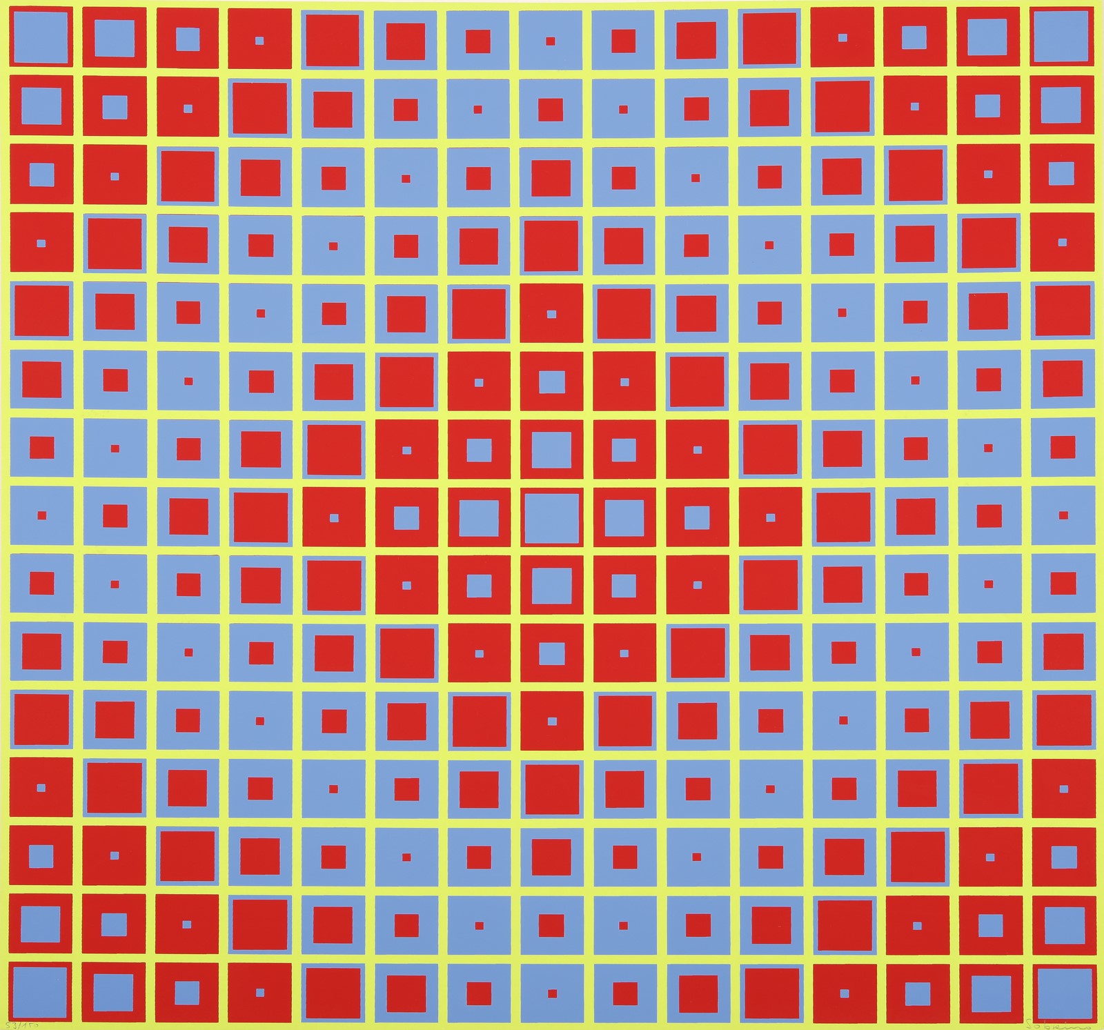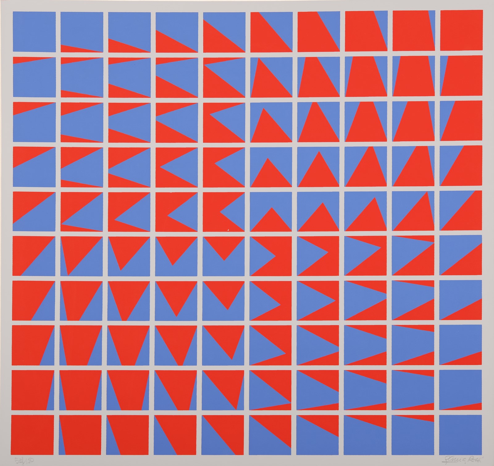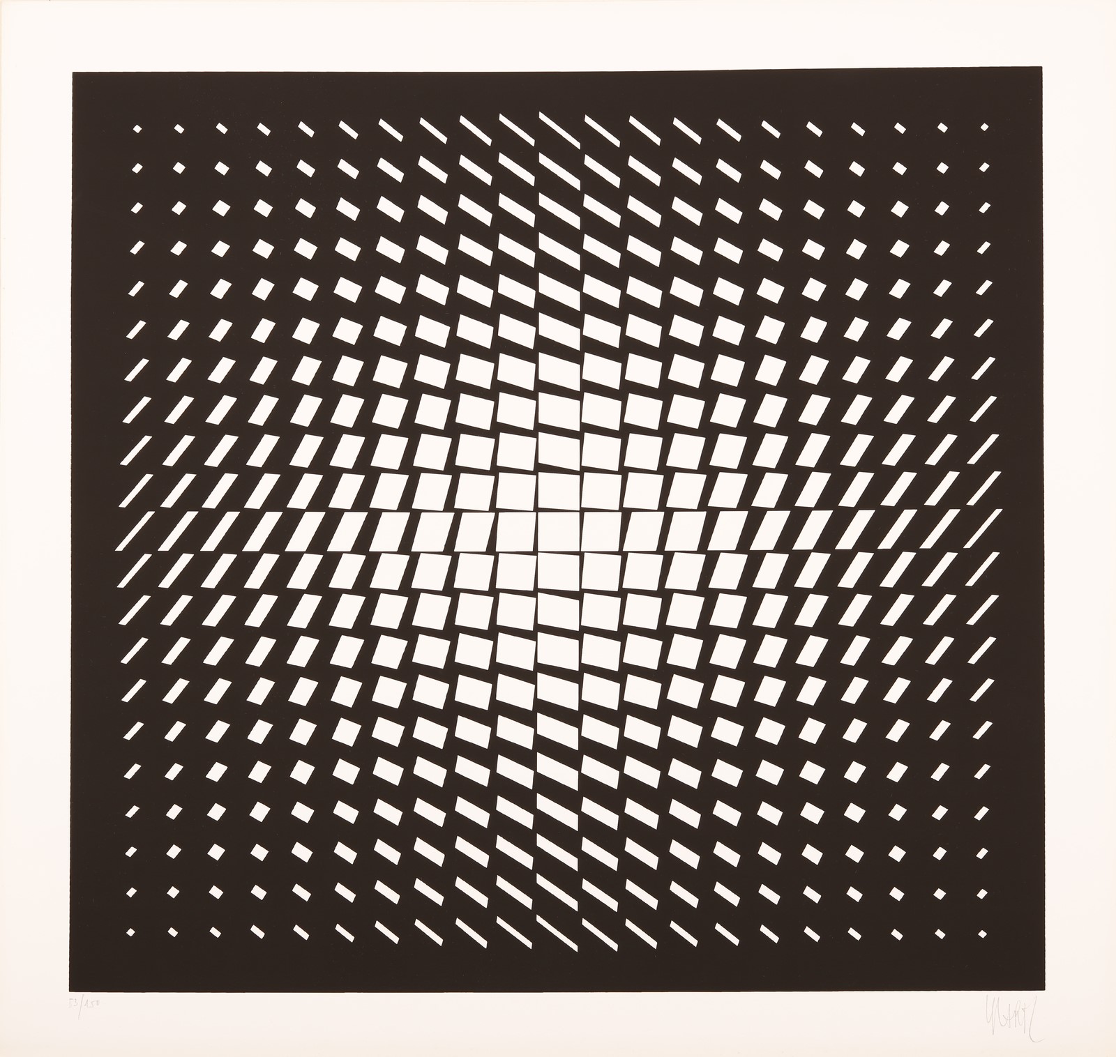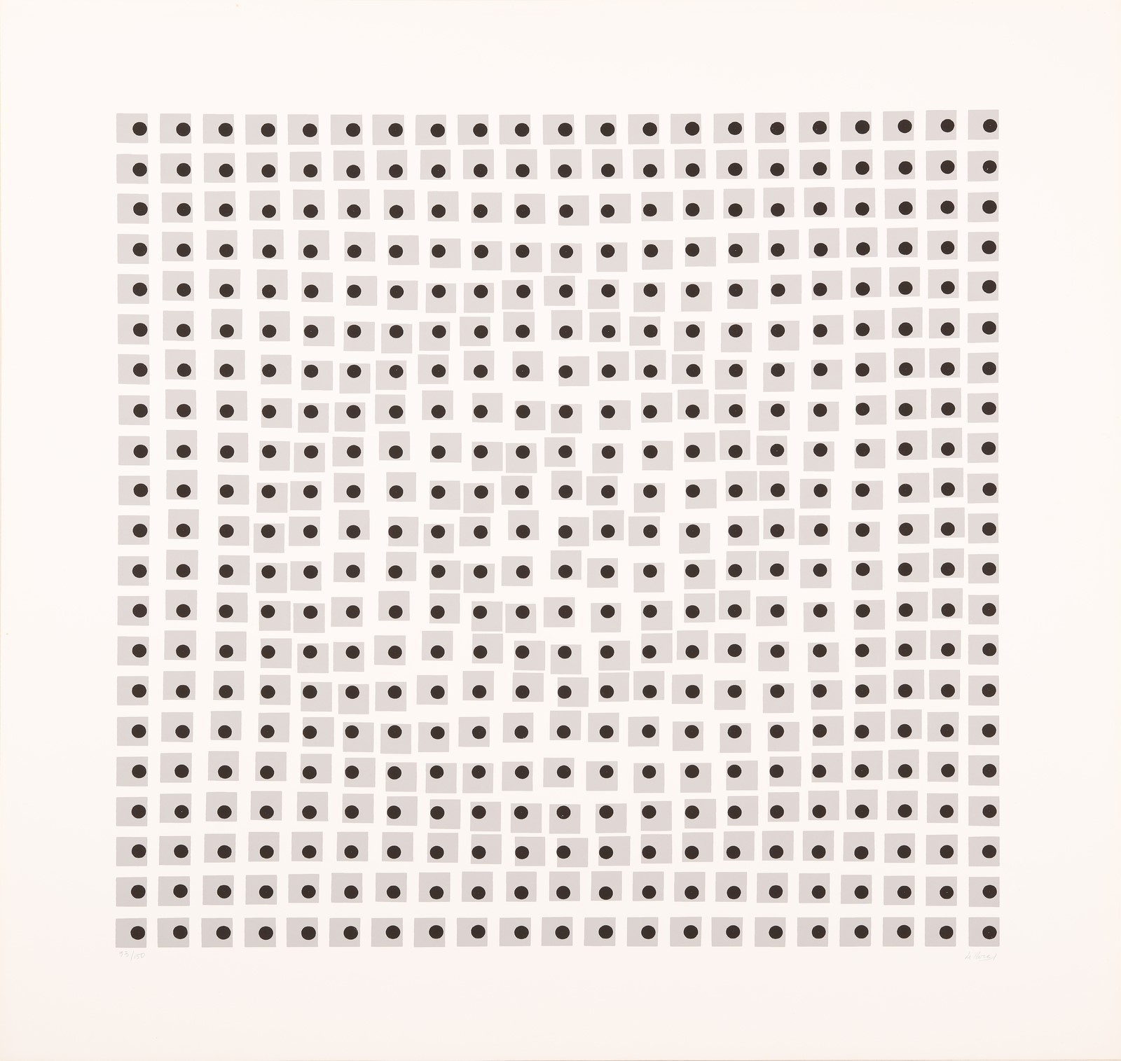 GRAV (Groupe de Recherche d'Art Visuel) Grav, Groupe de recherche d'art visuel 1960-1968. (6 fogli). Serigrafia (cartella completa). Cm 70,00 x 70,00. 53/150. Cartella realizzata in occasione della mostra retrospettiva, Lago di Como, 20/30 settembre 1975 a cura di Luciano Caramel del Groupe de Recherche d'Art Visuel ( Garcia Rossi, Le Parc, Morellet, Sobrino, Stein, Yvaral). Tutte le opere presentano firma e tiratura in basso a matita. Editore: Galleria Team Colore, Milano. Stampatore: Sam Villa, Milano. Presenti difetti. Cartella contenitiva in cartone originale e colophon.