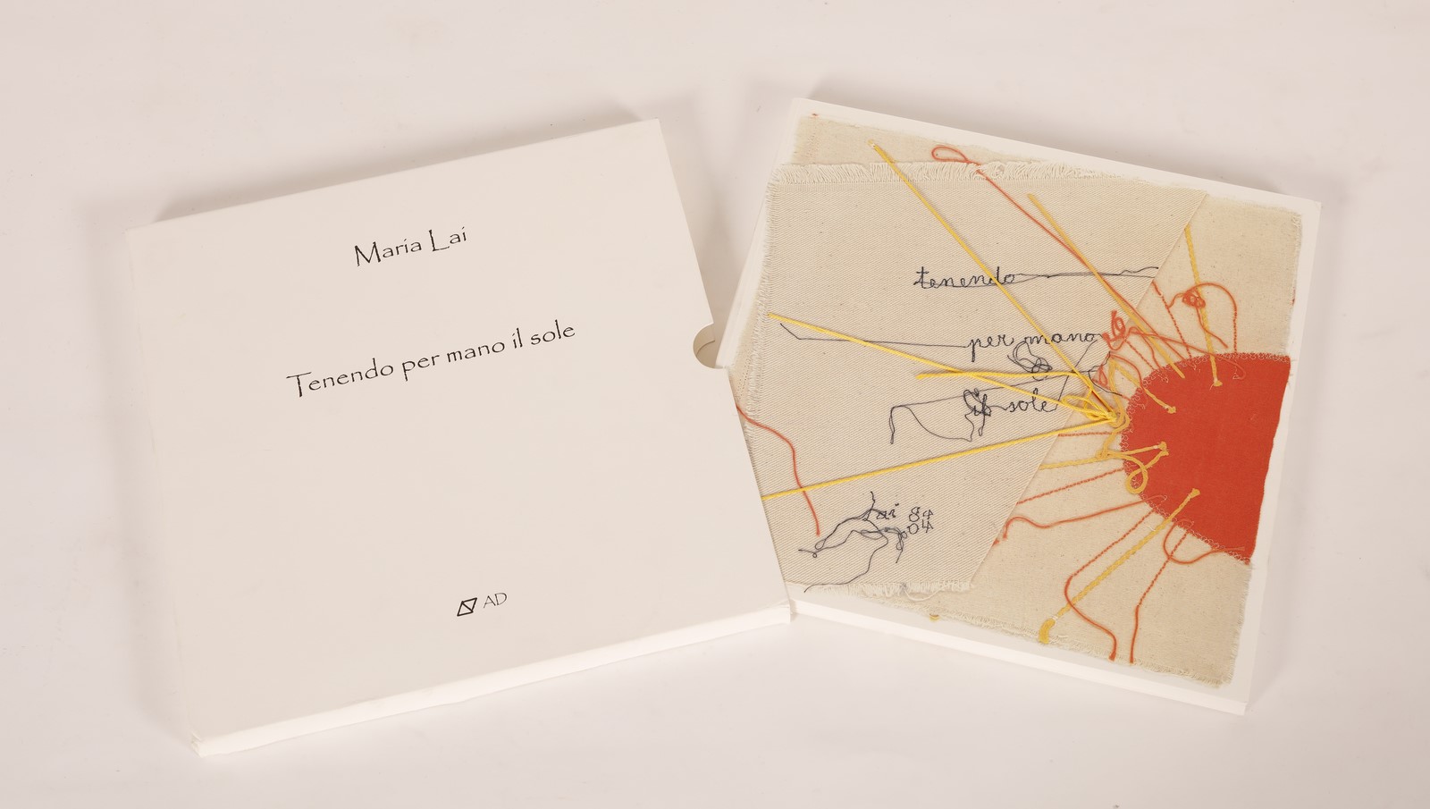 LAI MARIA (1919 - 2013) Tenendo per mano il sole. Libro d'artista. Cm 28,00 x 28,00. A.D. arte duchamp, Cagliari 2004. Presenti fili sulla copertina, colophon, cd e confezione originale.