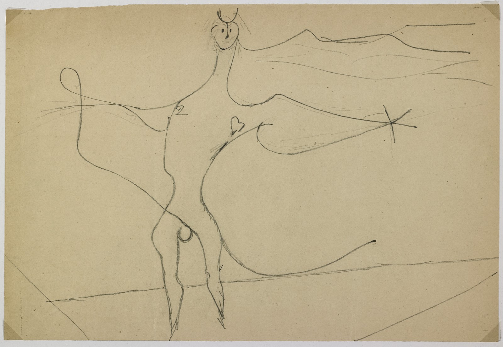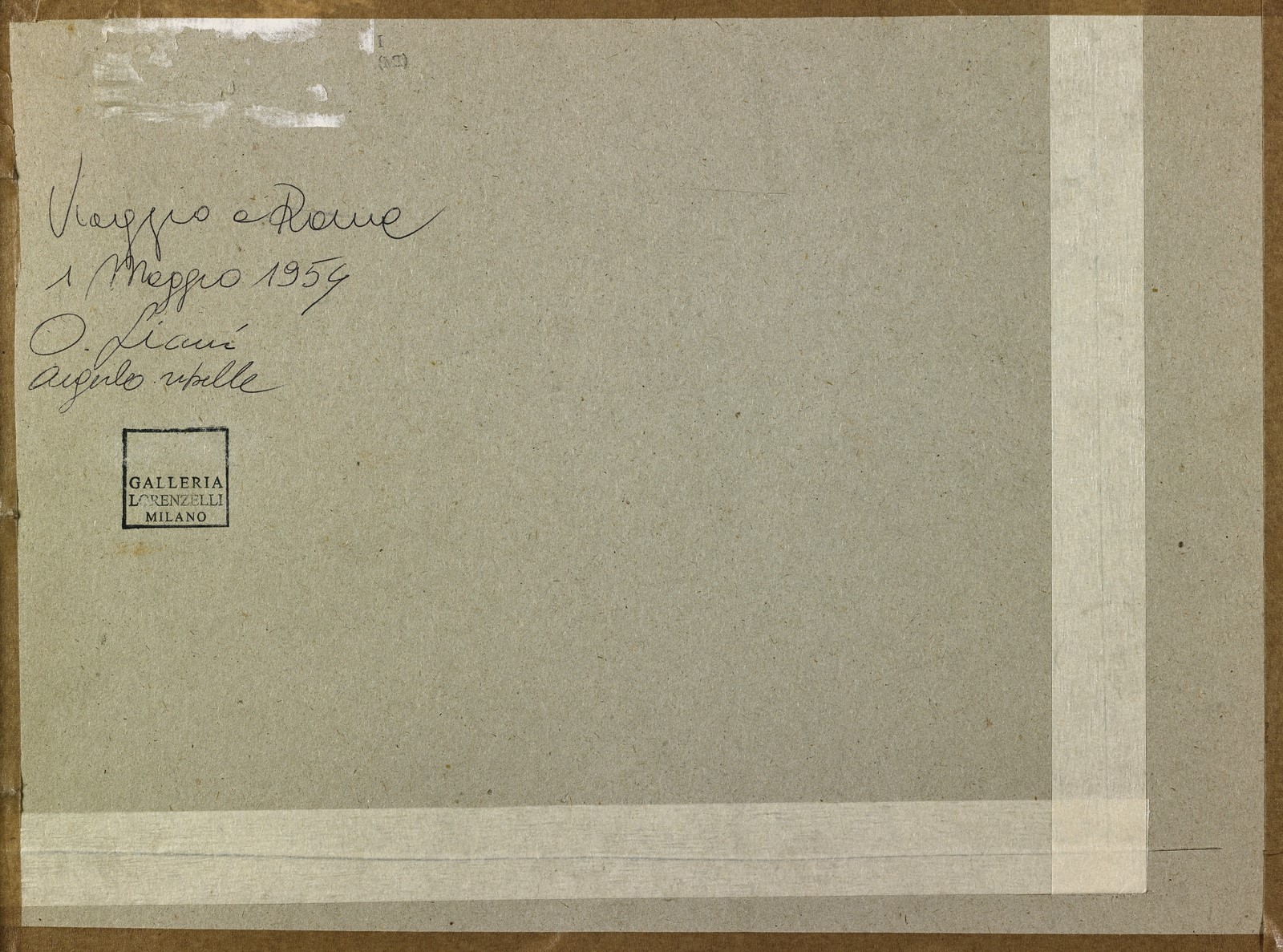 LICINI OSVALDO (1894 - 1958) Viaggio a Roma. 1954. Matita su carta. Cm 27,00 x 18,00. Al retro titolo, firma, anno e timbro Galleria Lorenzelli, Milano. Cornice presente