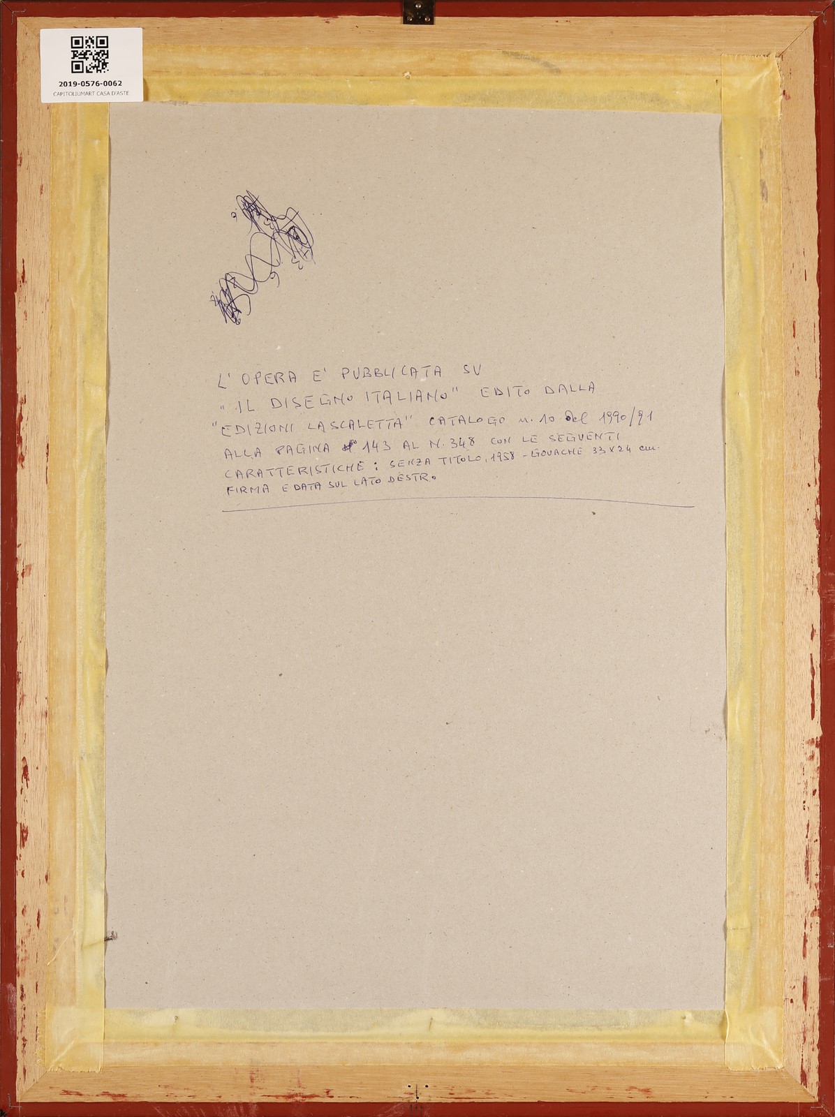 BERTINI GIANNI (1922 - 2010) Senza titolo. 1958. Tecnica mista su carta. Cm 24,00 x 32,00. Firma e anno in alto a destra. Autentica dell'artista su fotografia. Pubblicazione: Il Disegno italiano , Edizioni La Scaletta, catalogo n.10 1990-1991, p.143 n.348. Presenti lievi difetti. Cornice presente