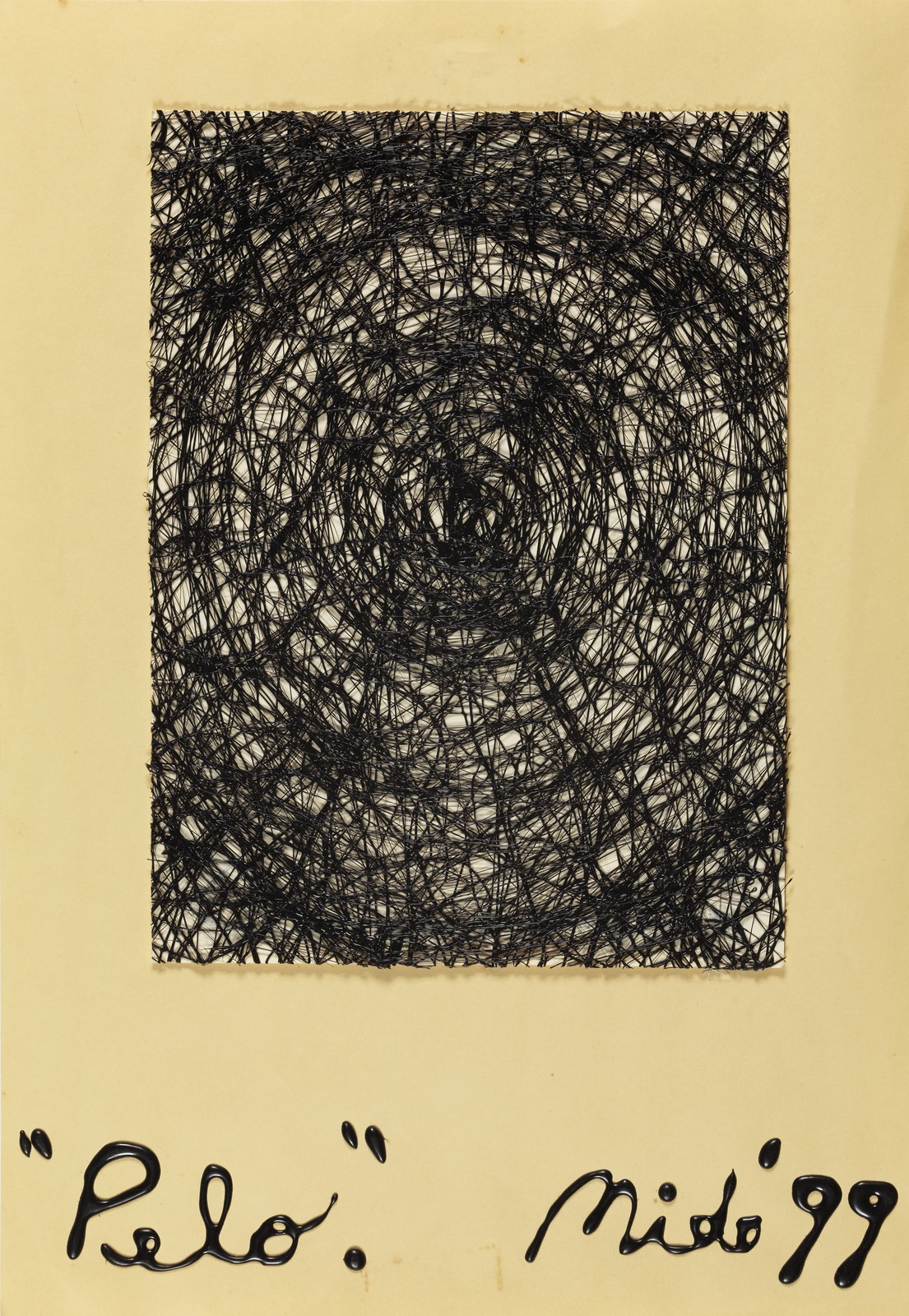 NIDO DAVIDE (1966 - 2014) Pelo. 1999. Colle termofusibili su carta. Cm 35,00 x 50,00. Titolo, firma e anno in basso.