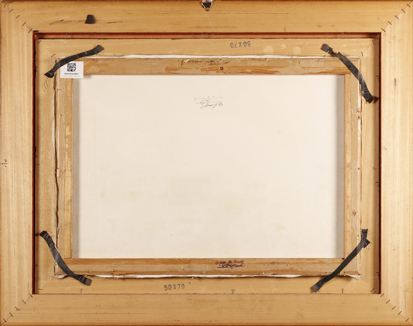 VILLORESI FRANCO (1920 - 1975) Senza titolo. Olio su tela . Cm 70,00 x 50,00. Firma in basso a destra. Al retro timbri Galleria La Bussola. Cornice presente