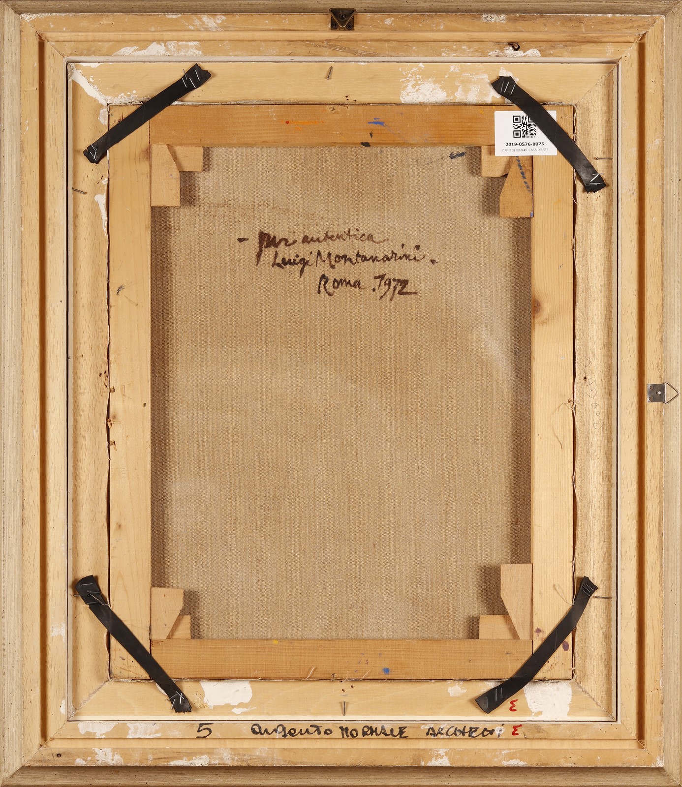 MONTANARINI LUIGI (1906 - 1998) Senza titolo. 1972. Olio su tela . Cm 40,00 x 50,00. Firma in basso a destra. Al retro firma e anno. Lieve difetto.