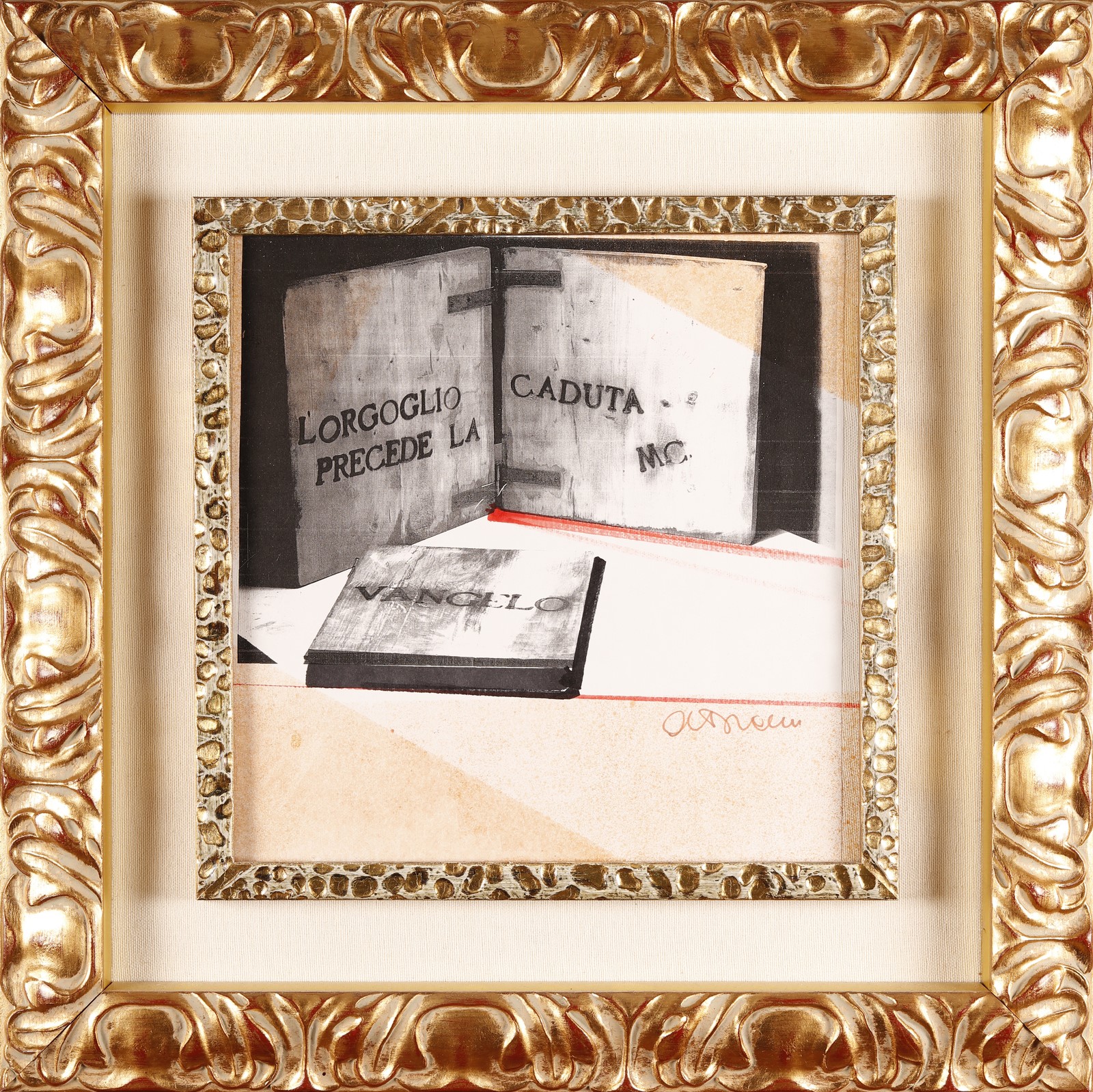DEL DONNO ANTONIO (n. 1927) Senza titolo. Tecnica mista su tela. Cm 30,00 x 30,00. Firma in basso a destra e al retro. Opera archiviata presso l'Archivio Antonio Del Donno come da documentazione fotografica allegata all'opera riportante il relativo numero d'inventario. Cornice presente