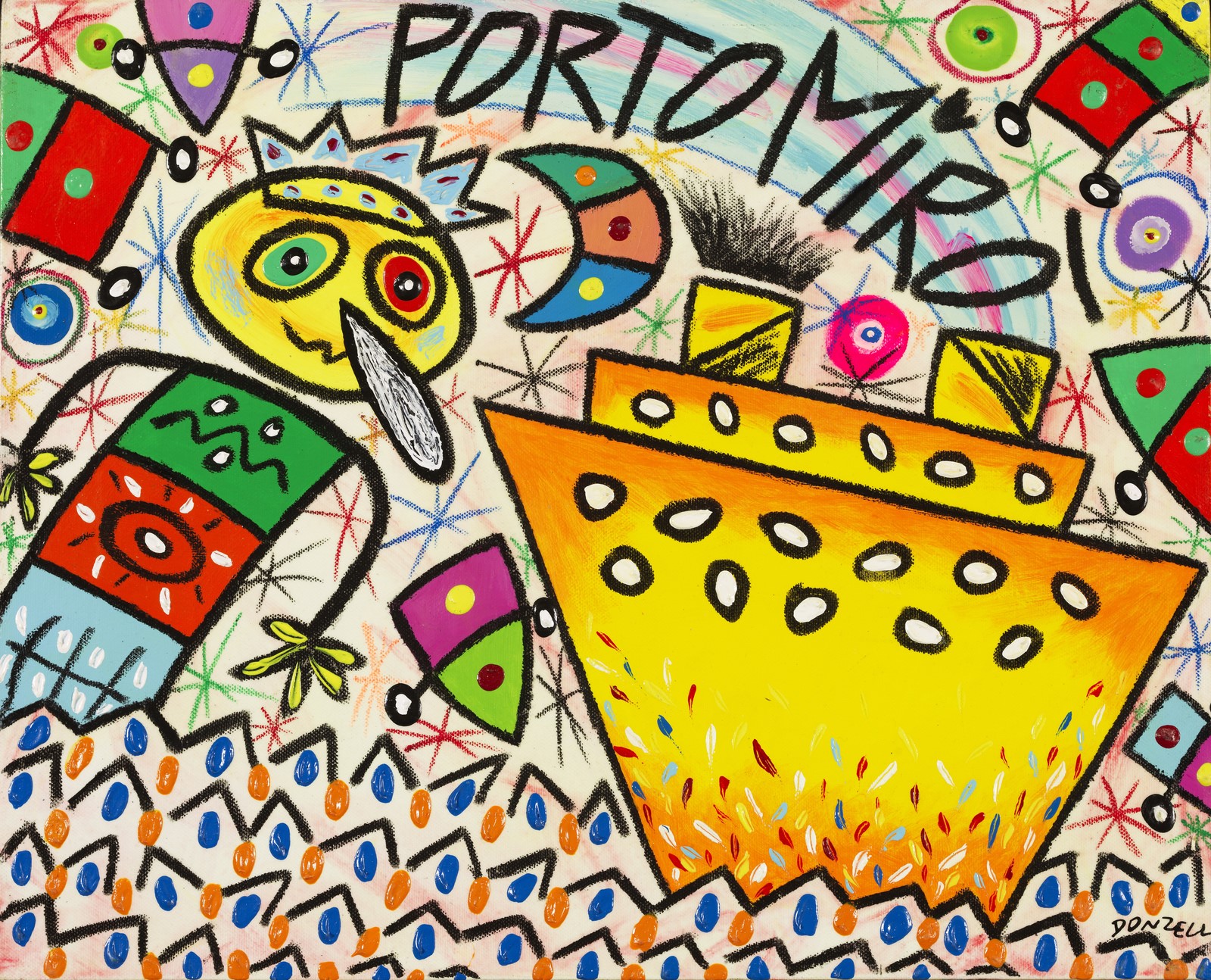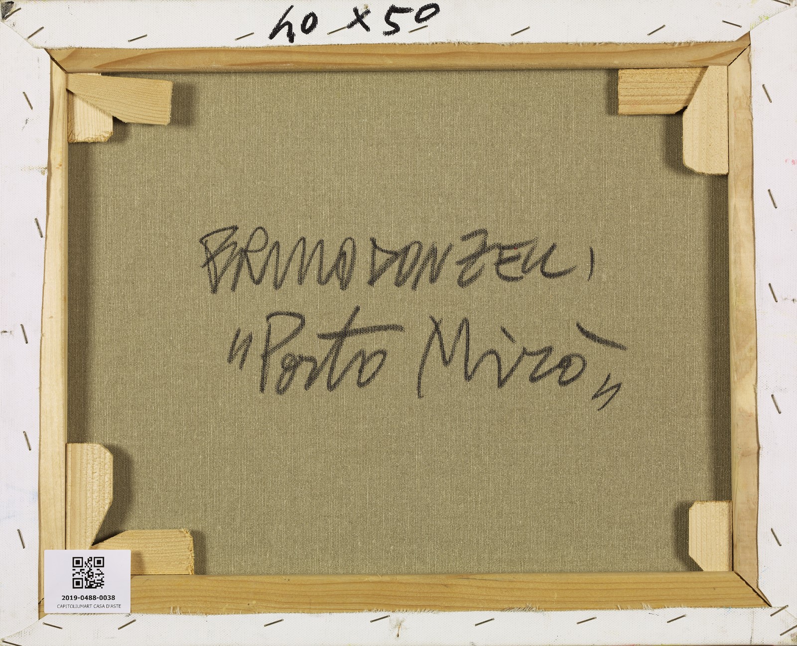 DONZELLI BRUNO (n. 1941) Porto Mirò. Tecnica mista su tela. Cm 50,00 x 40,00. Firma in basso a destra. Al retro titolo e firma.