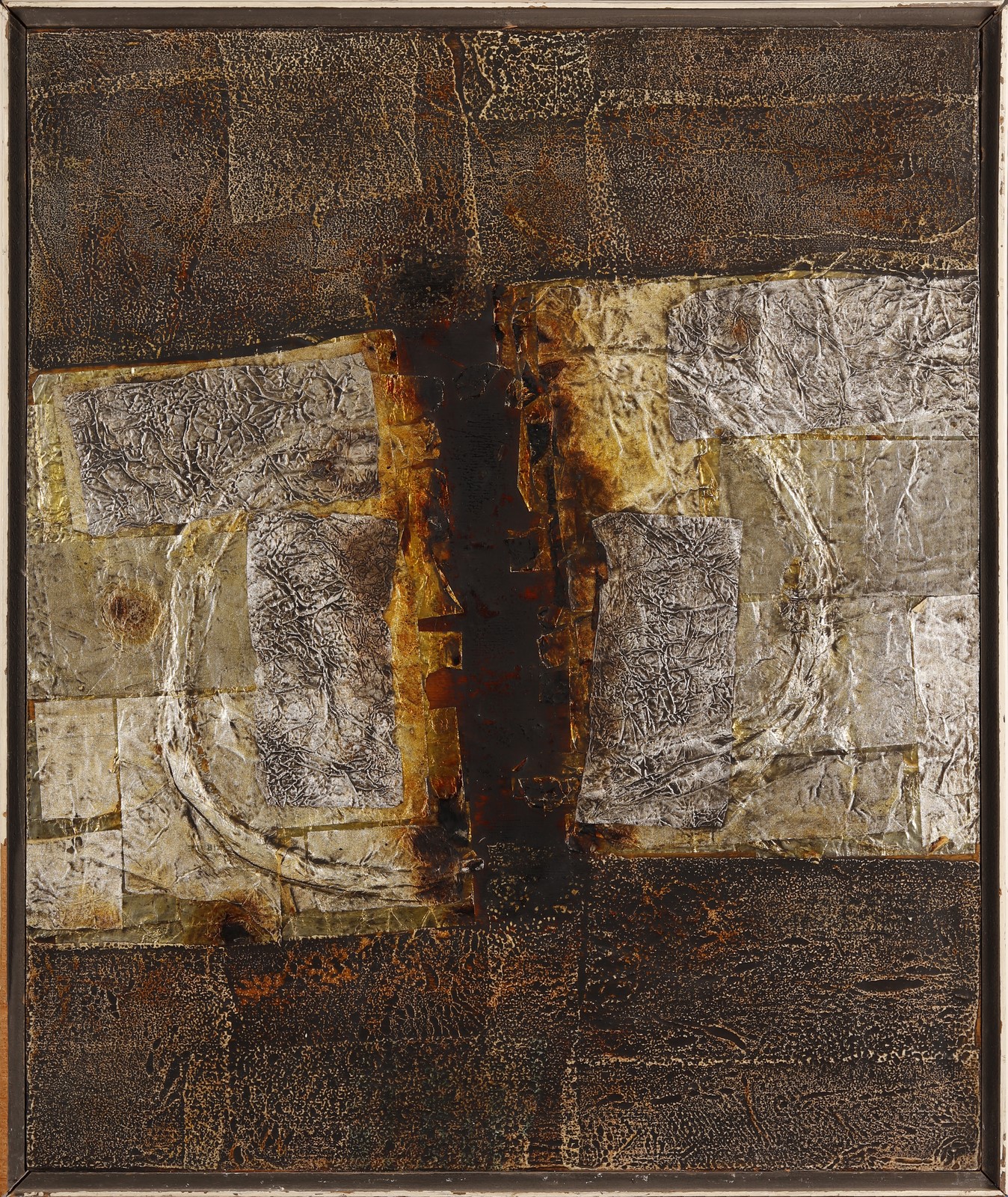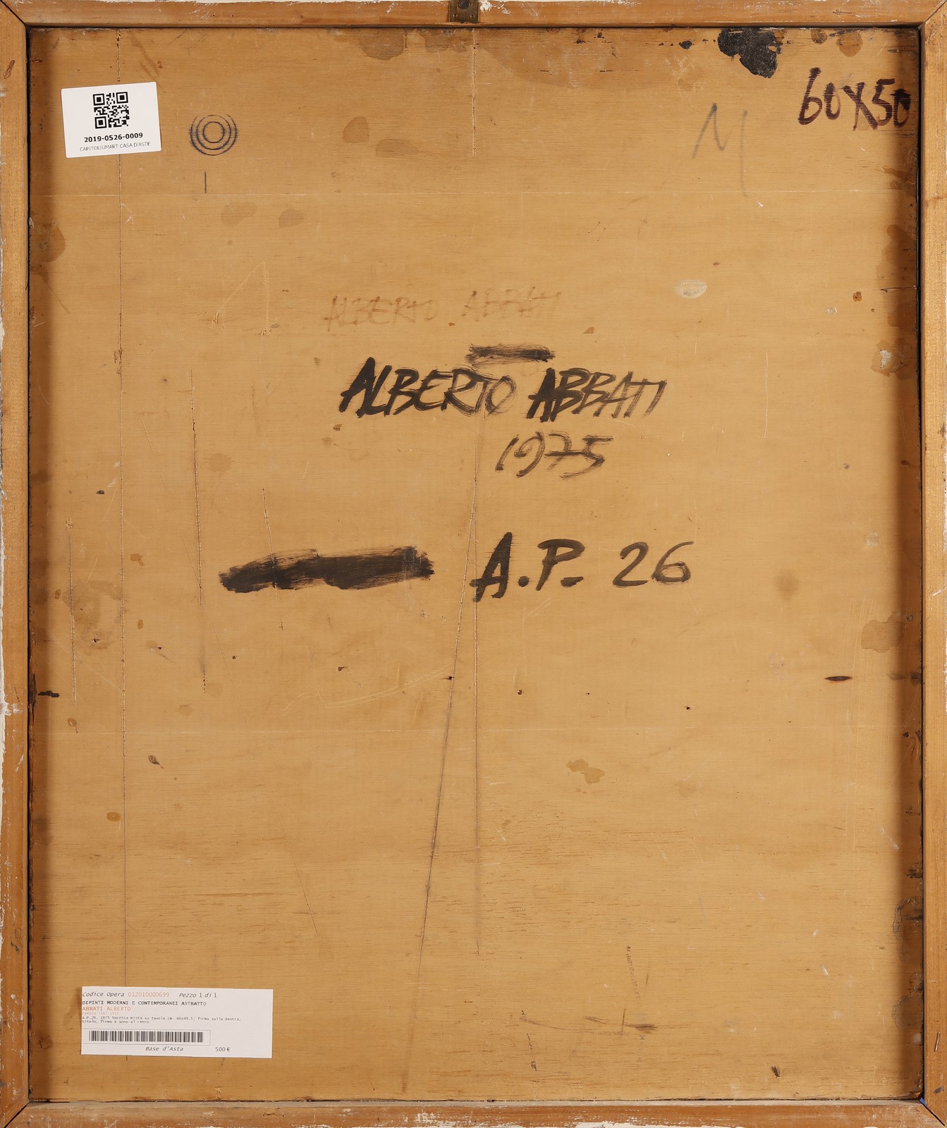 ABBATI ALBERTO (1923 - 2011) A.p.26. 1975. Tecnica mista su tavola. Cm 50,00 x 60,00. Al retro titolo, firma e anno. Autentica dell'artista su fotografia. Provenienza: Meeting Art, Vercelli. Cornice presente