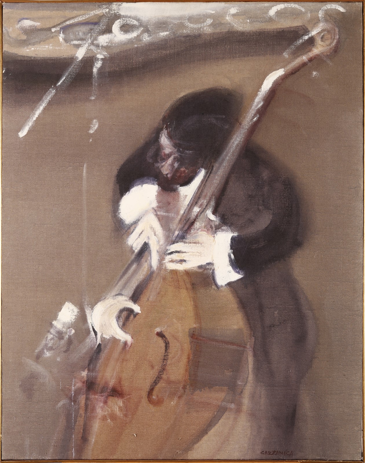 CAZZANIGA GIANCARLO (1930 - 2013) A Dalida. 2004. Olio su tela . Cm 70,00 x 90,00. Al retro titolo, firma e anno.