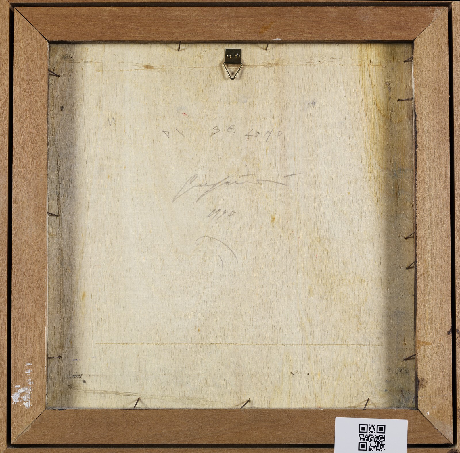 GALLIANI OMAR (n. 1954) Disegno. 1995. Tecnica mista su tavola. Cm 30,00 x 30,00. Al retro titolo, firma e anno. Opera archiviata presso la Galleria d'Arte Astuni, Fano come da documentazione fotografica allegata all'opera riportante il relativo numero d'inventario e la firma dell'artista.. Cornice presente