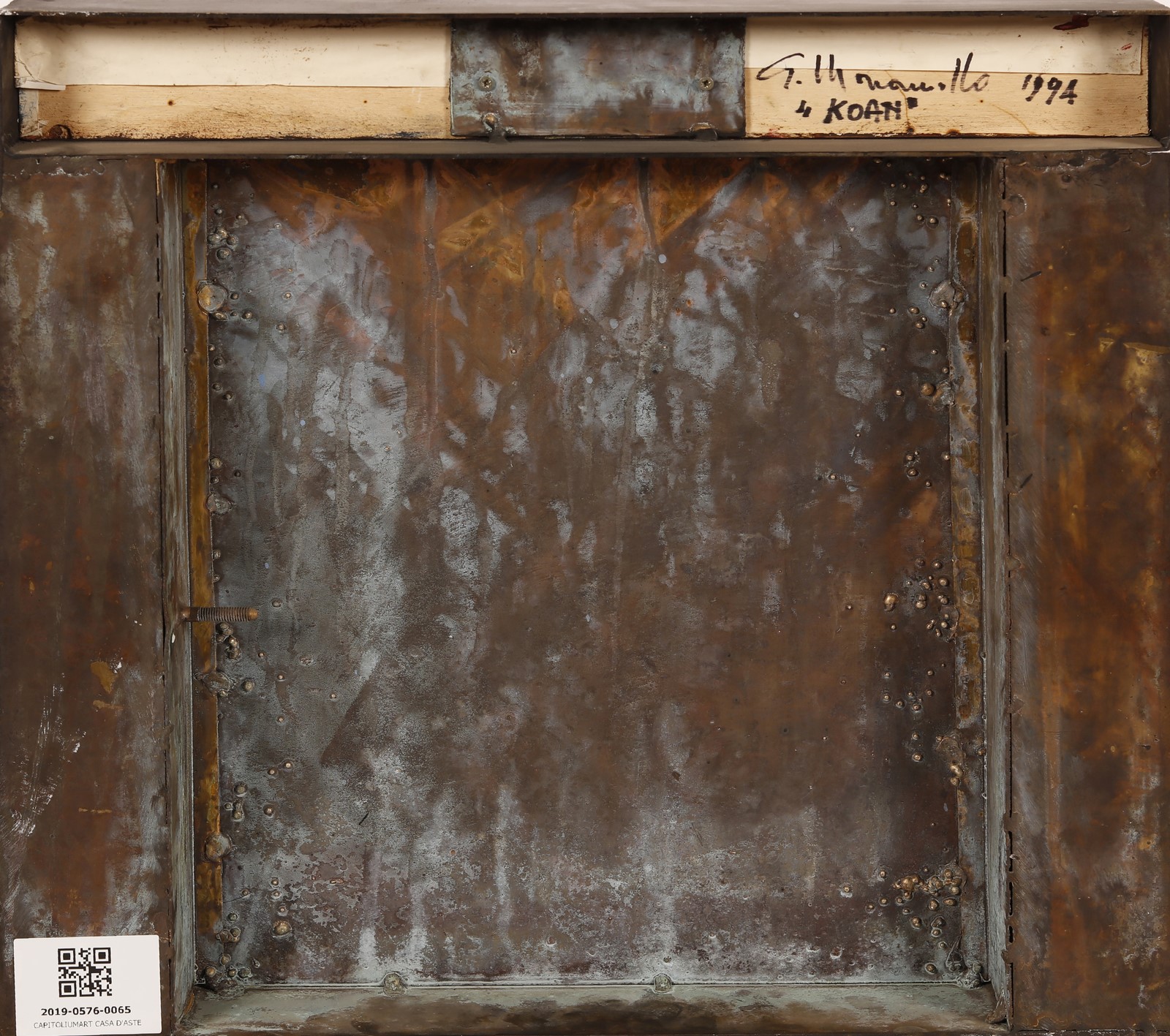 MARANIELLO GIUSEPPE (n. 1945) Koan. 1994. Tecnica mista su bronzo. Cm 45,00 x 41,00 x 5,00. Al retro titolo, firma e anno. Autentica dell'artista su fotografia. Pubblicazione: Giuseppe Maraniello: Koan a cura di Danilo Eccher, Studio la Città, Verona, Mostra n.194, 4 Dicembre 1994.
