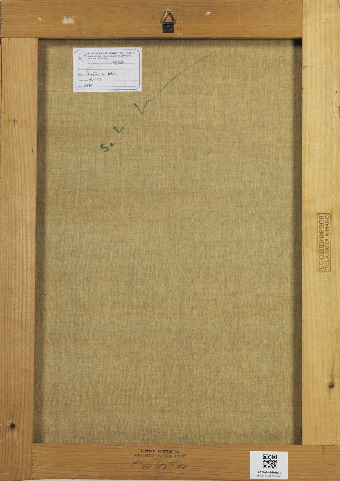SCHIFANO MARIO (1934 - 1998) Senza titolo. 1995. Tecnica mista su tela. Cm 50,00 x 70,00. Al retro firma e cartiglio descrittivo Fondazione Multistudio Mario Schifano. Provenienza:Telemarket, Roncadelle (Bs). Entro teca di plexiglass. . Cornice presente