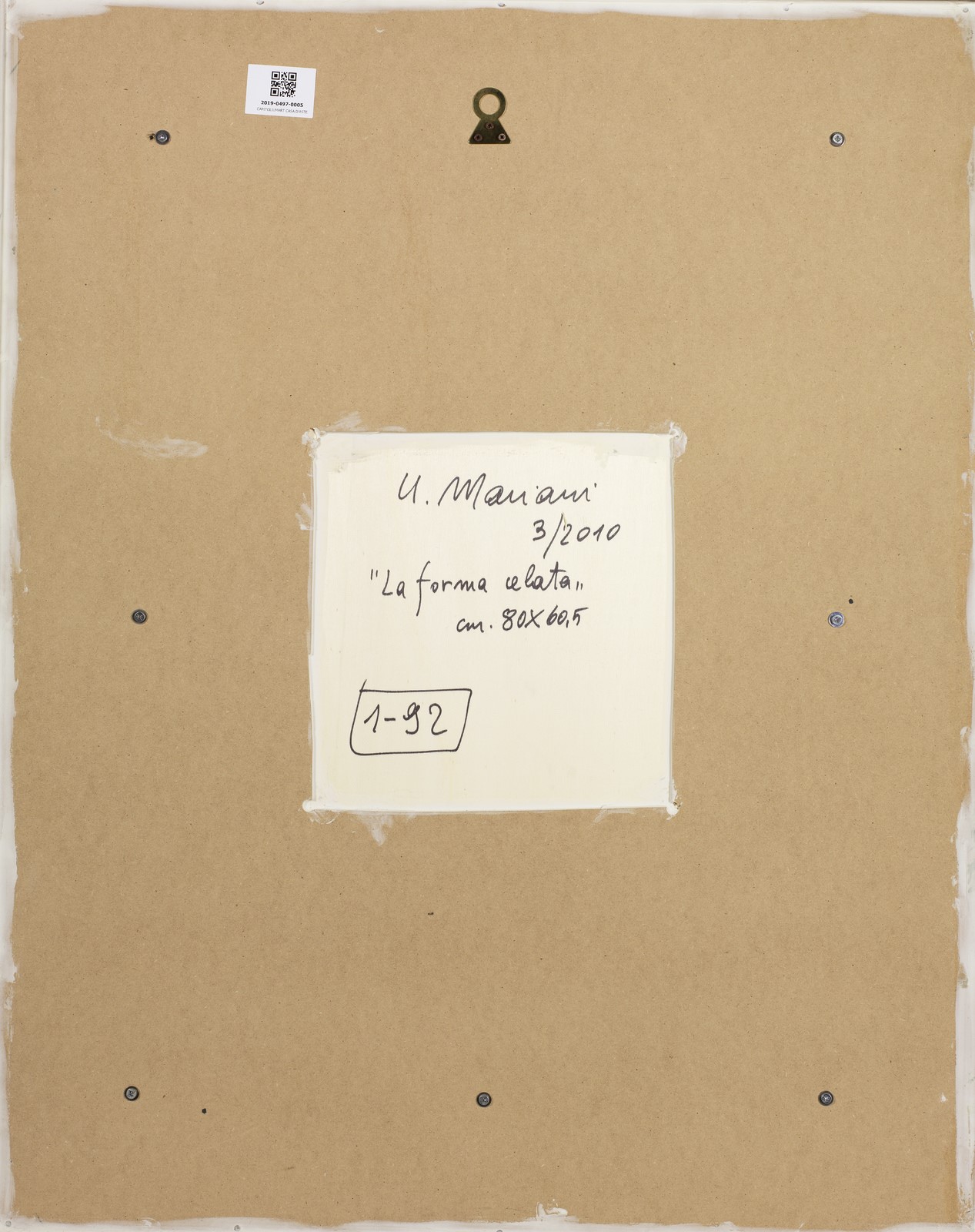 MARIANI UMBERTO (n. 1936) La forma celata. 2010. Tecnica mista . Cm 60,00 x 80,00. Al retro titolo, firma e anno. Autentica dell'artista su fotografia. Cornice presente