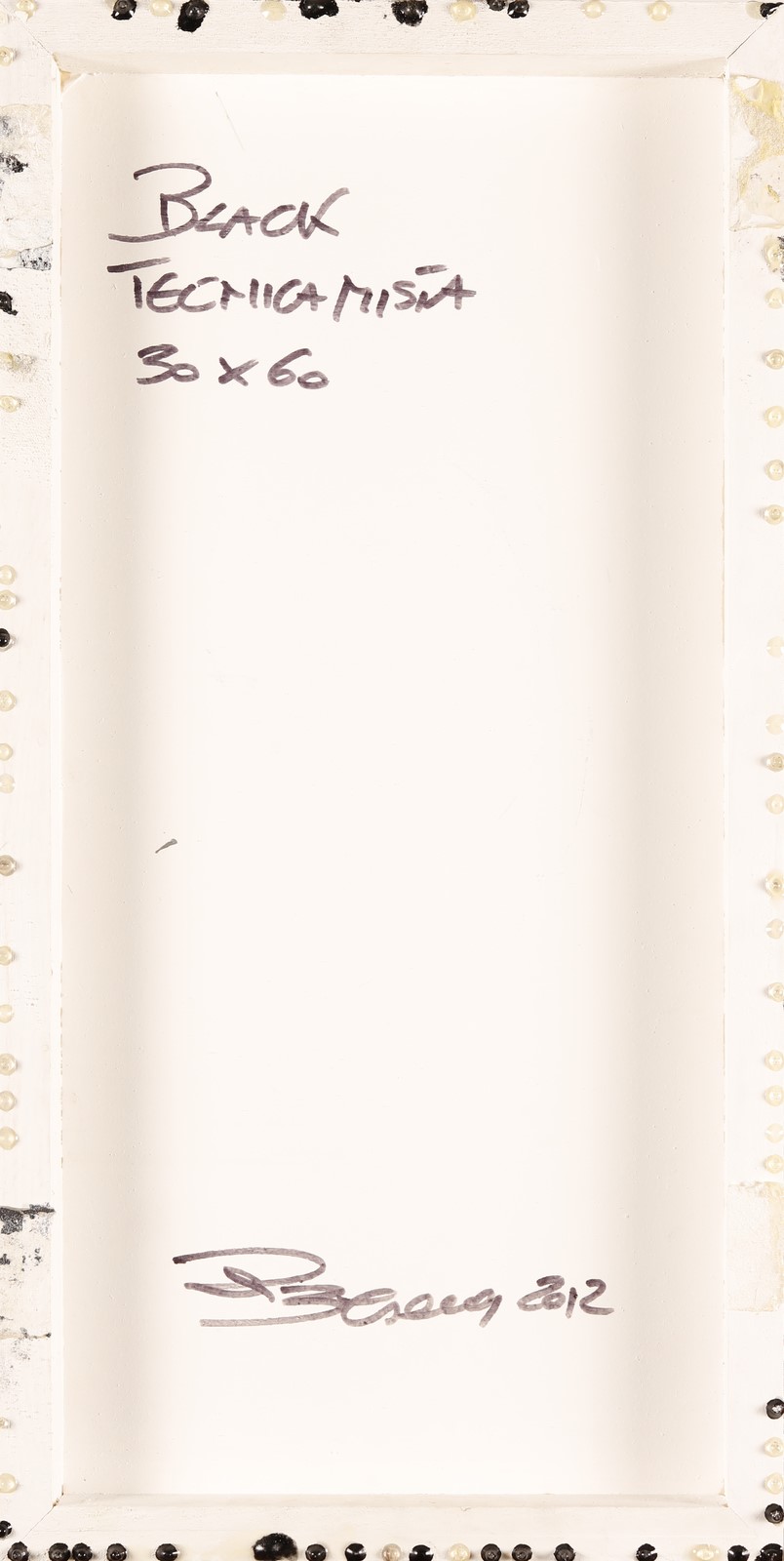 BESANA ROBERTO (n. 1965) Black. 2012. Smalti su tela. Cm 30,00 x 60,00. Al retro titolo, firma e anno. Autentica dell'artista su fotografia. Provenienza: Arte Colonna, Appiano Gnetile (Co).