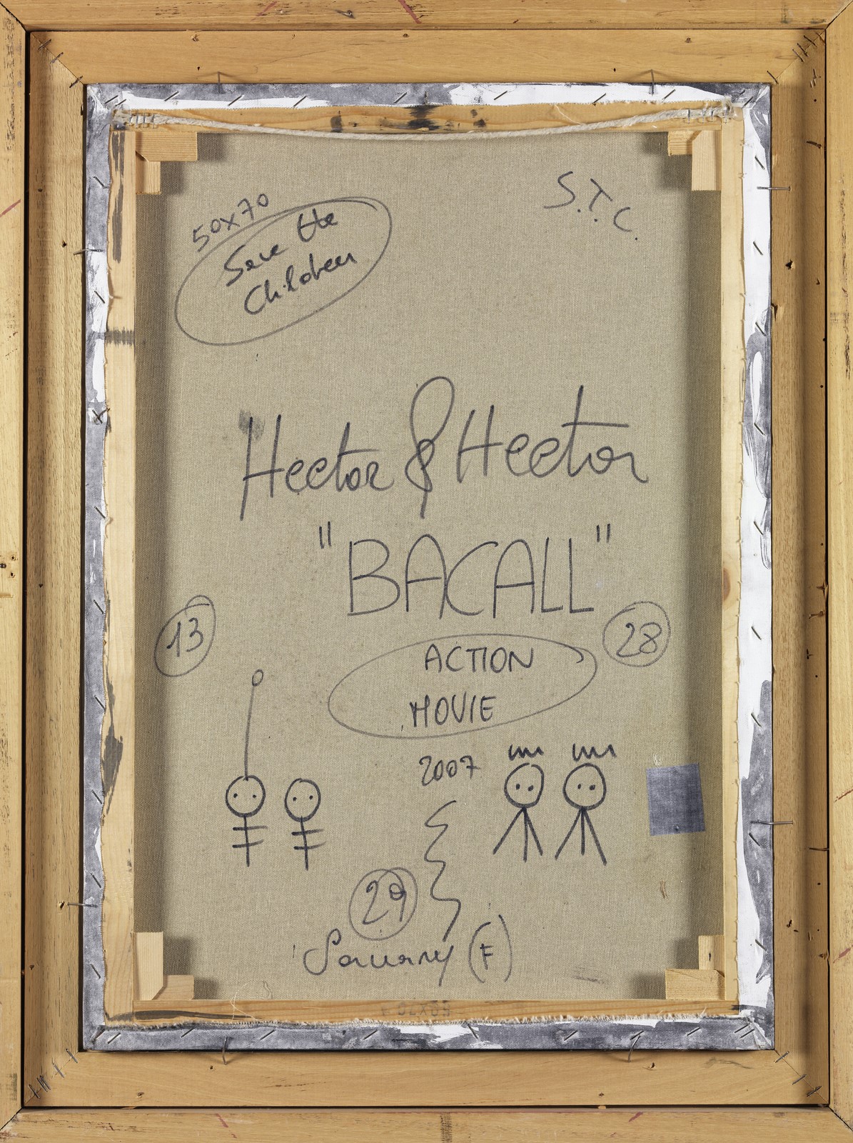 HECTOR & HECTOR (n. 1956) Bacall. 2007. Tecnica mista su carta su tela. Cm 50,00 x 70,00. Firma e anno in basso a sinistra. Al retro titolo, firma e anno. Cornice presente