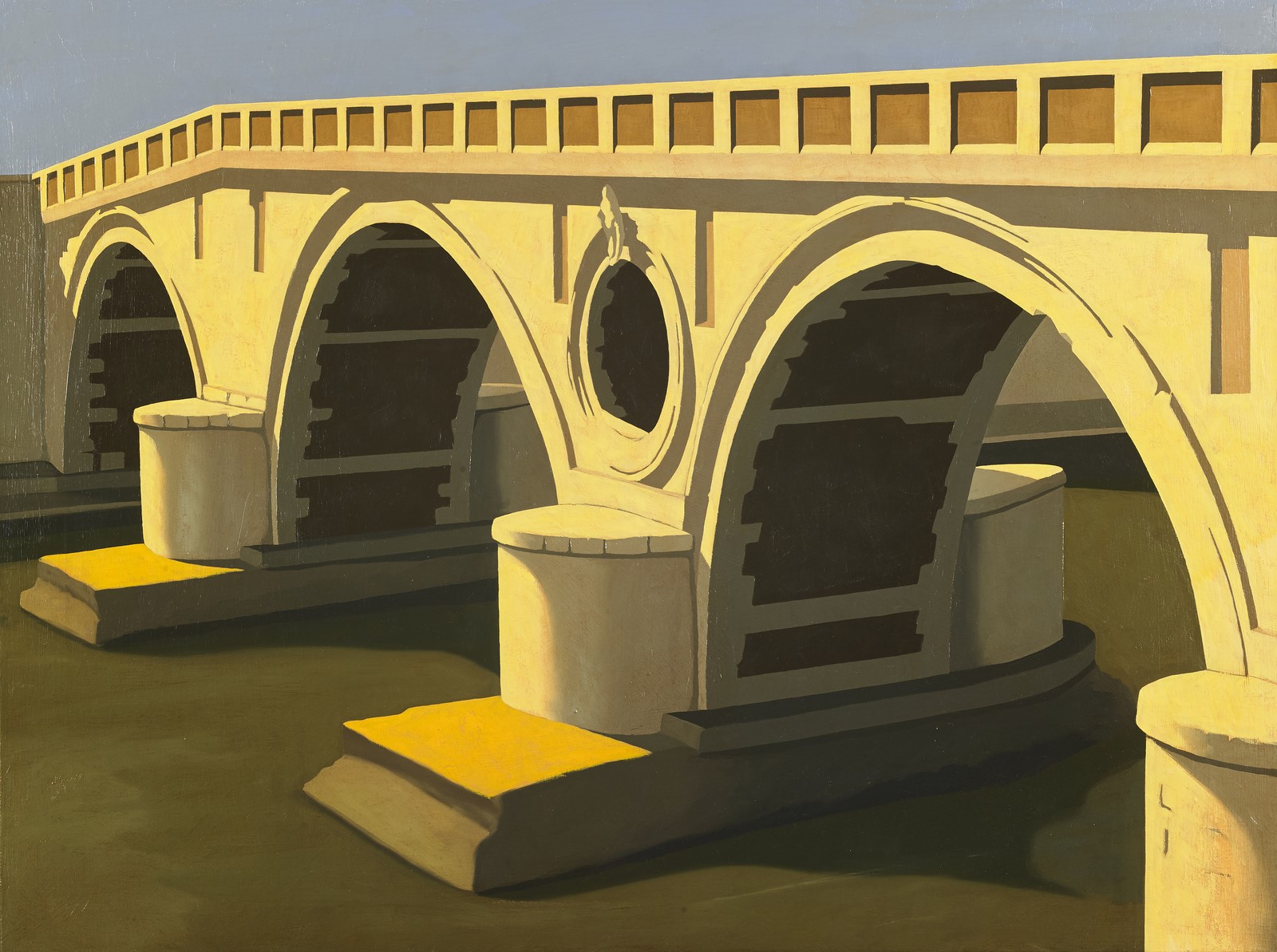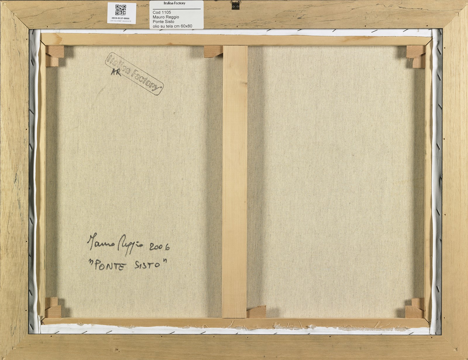 REGGIO MAURO (n. 1971) Ponte Sisto. 2006. Olio su tela . Cm 80,00 x 60,00. Al retro titolo, firma, anno, timbro e cartiglio descrittivo Italian Factory.Autentica dell'artista su fotografia. Cornice presente