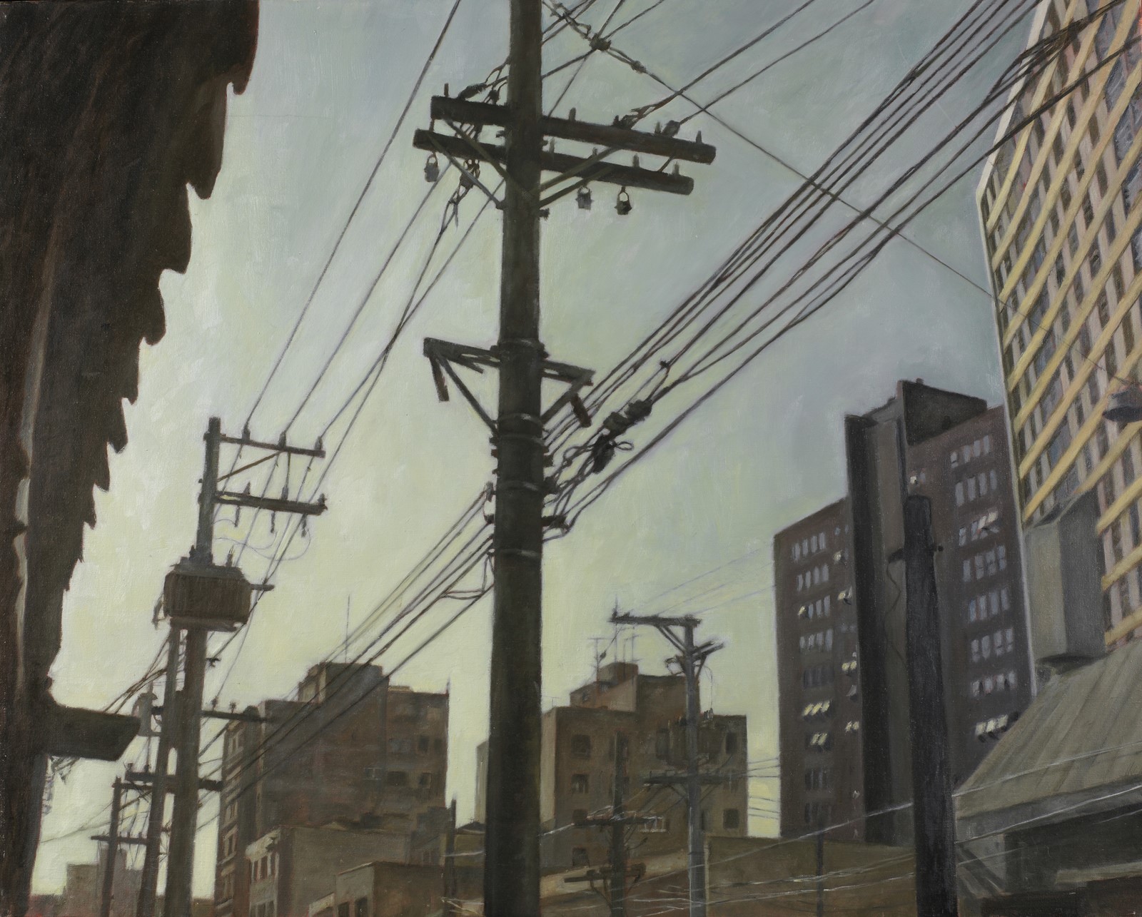 DURINI GIULIO (n. 1966) San Paulo. 2009. Olio su tela . Cm 100,00 x 80,00. Al retro titolo, anno e timbro Italian Factory. Autentica dell'artista su fotografia con timbro Italian Factory. Cornice presente