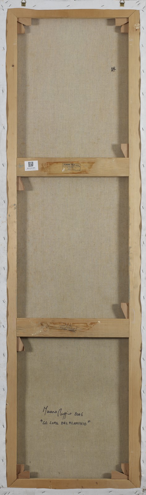 REGGIO MAURO (n. 1971) La lupa del flaminio. 2006. Olio su tela . Cm 60,00 x 200,00. Al retro titolo, firma e anno. Certificato di garanzia DL Arte, Milano.
