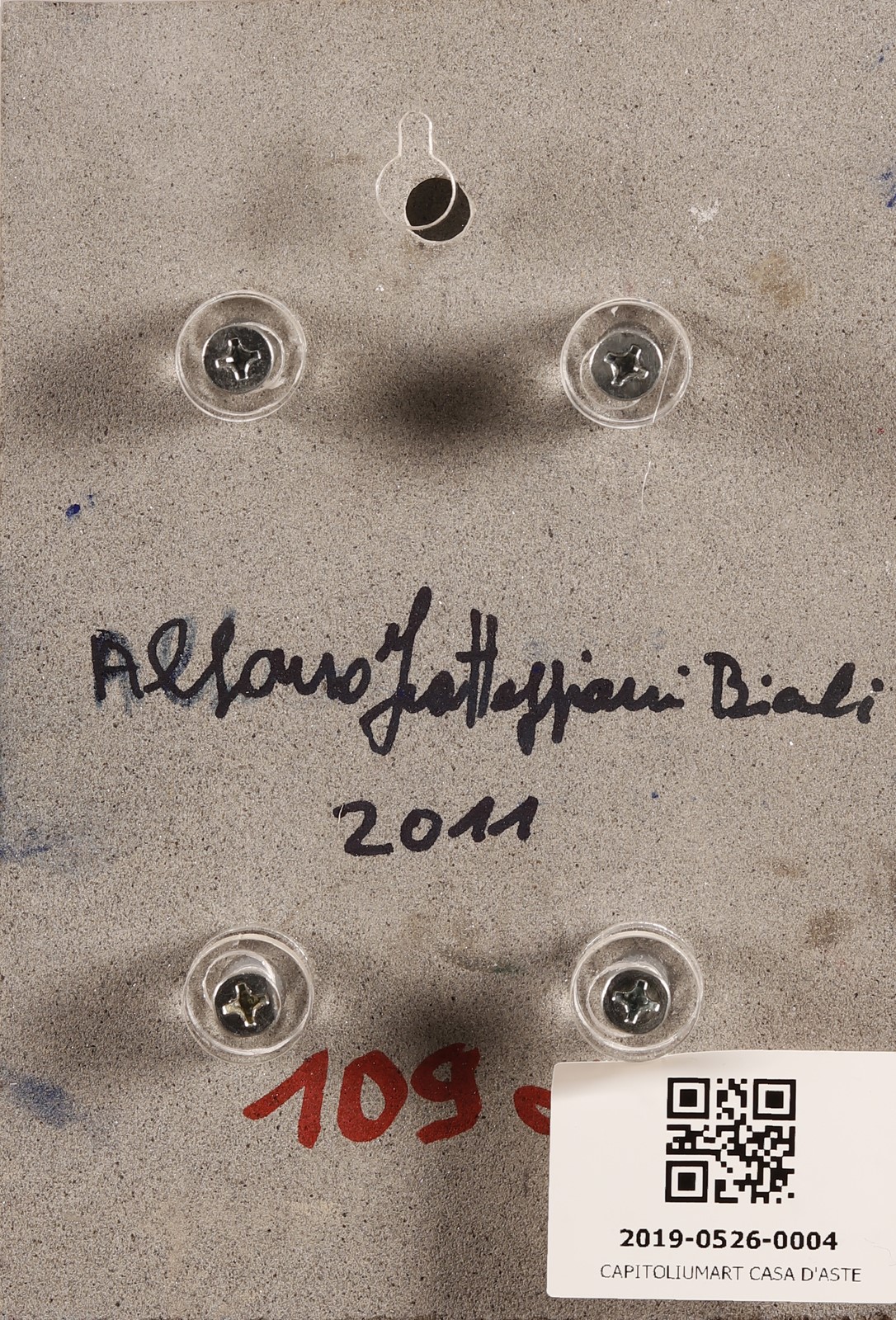 BIANCHI FRATTEGGIANI ALFONSO (n. 1952) Blu 23070. 2011. Pigmento su pietra serena. Cm 14,00 x 21,00. Al retro firma e anno.Certificato di autenticità Gallerie d'arte Orler con firma dell'artista. Provenienza: Cambi Casa d'Aste, Milano. Gallerie d'arte Orler. Entro teca di plexiglas. Cornice presente