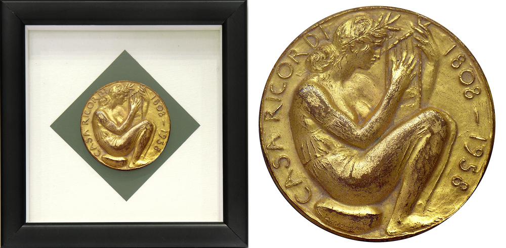 Messina Francesco CASA RICORDI 1808.1958 bassorilevo in bronzo, entro teca,...