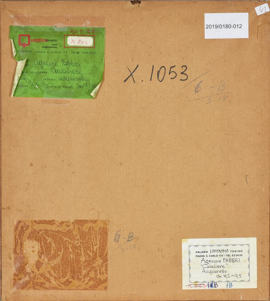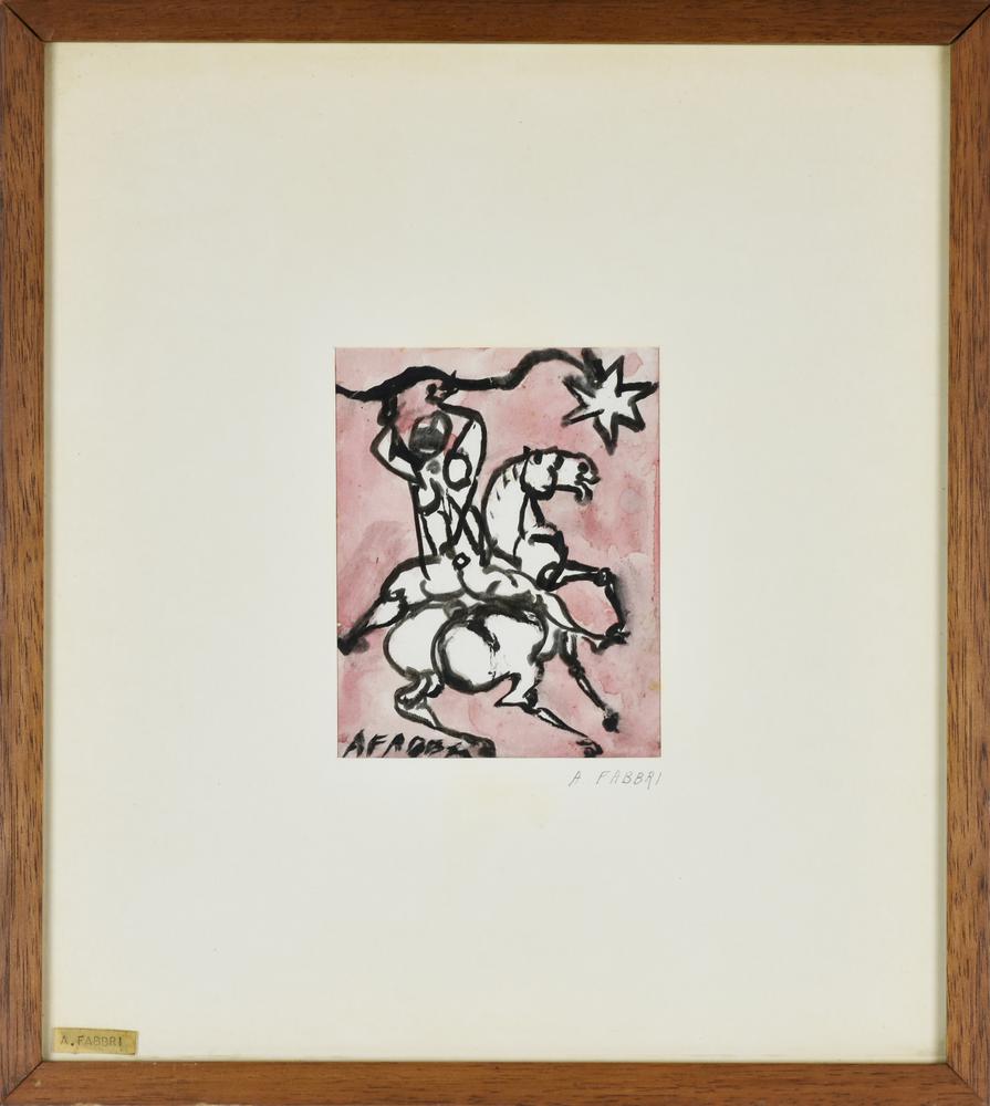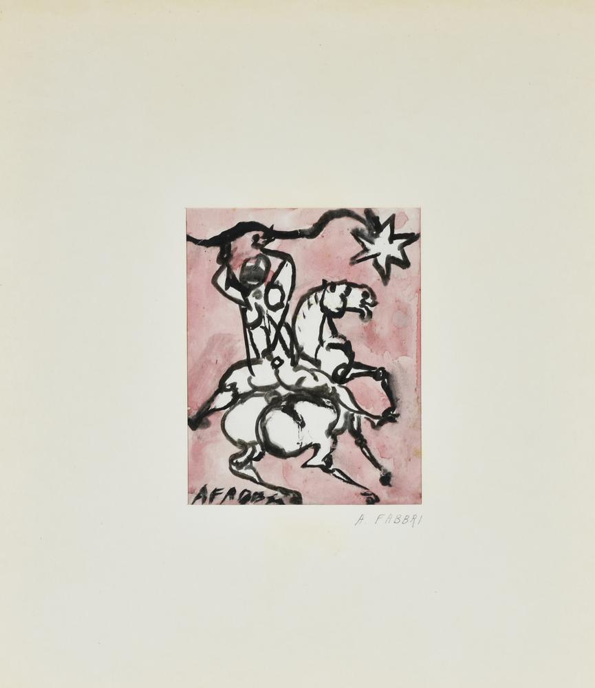 Fabbri Agenore CAVALIERE acquarello su carta, cm 13,5x10,5 sul fronte: firma